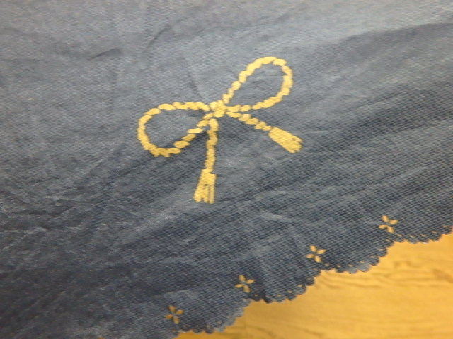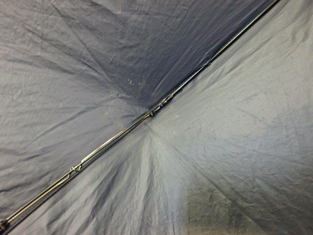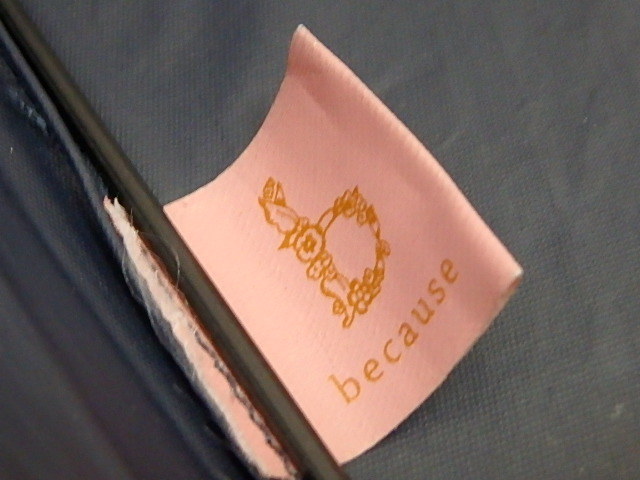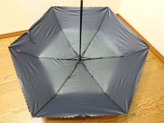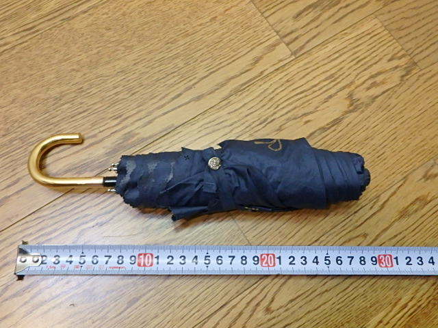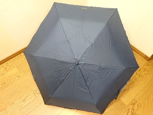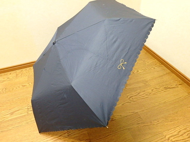 n305k 折りたたみ傘 because 紺色 リボンポイント 小さめ 雨傘 レディース 女性用 雨具 中古 (23-0424-22)