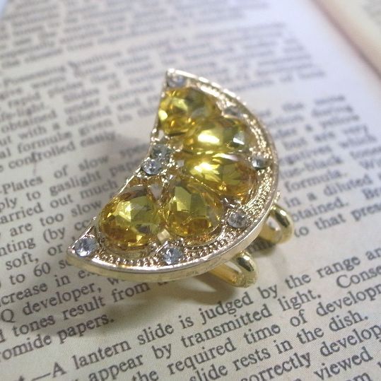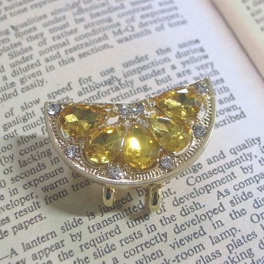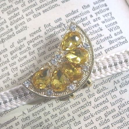LEAF CLUB ♪ハンドメイド 帯留め 帯留 レモン 檸檬 れもん ラインストーン ビジュー フルーツ 果物 食品 キラキラ