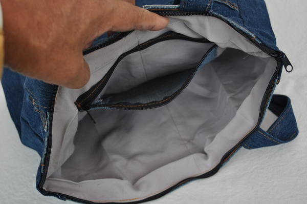 この品はリ・サイクルデニムバッグになりますから