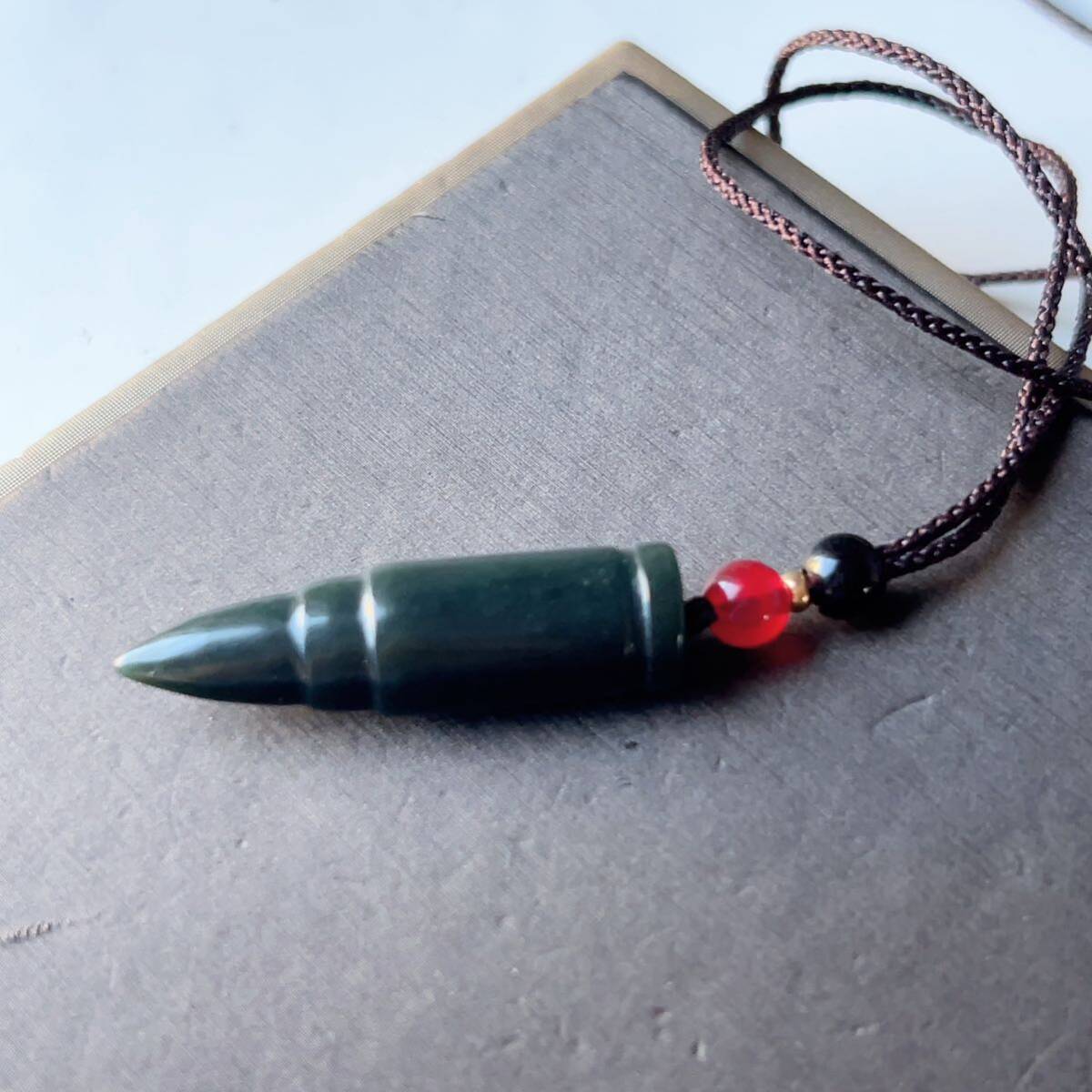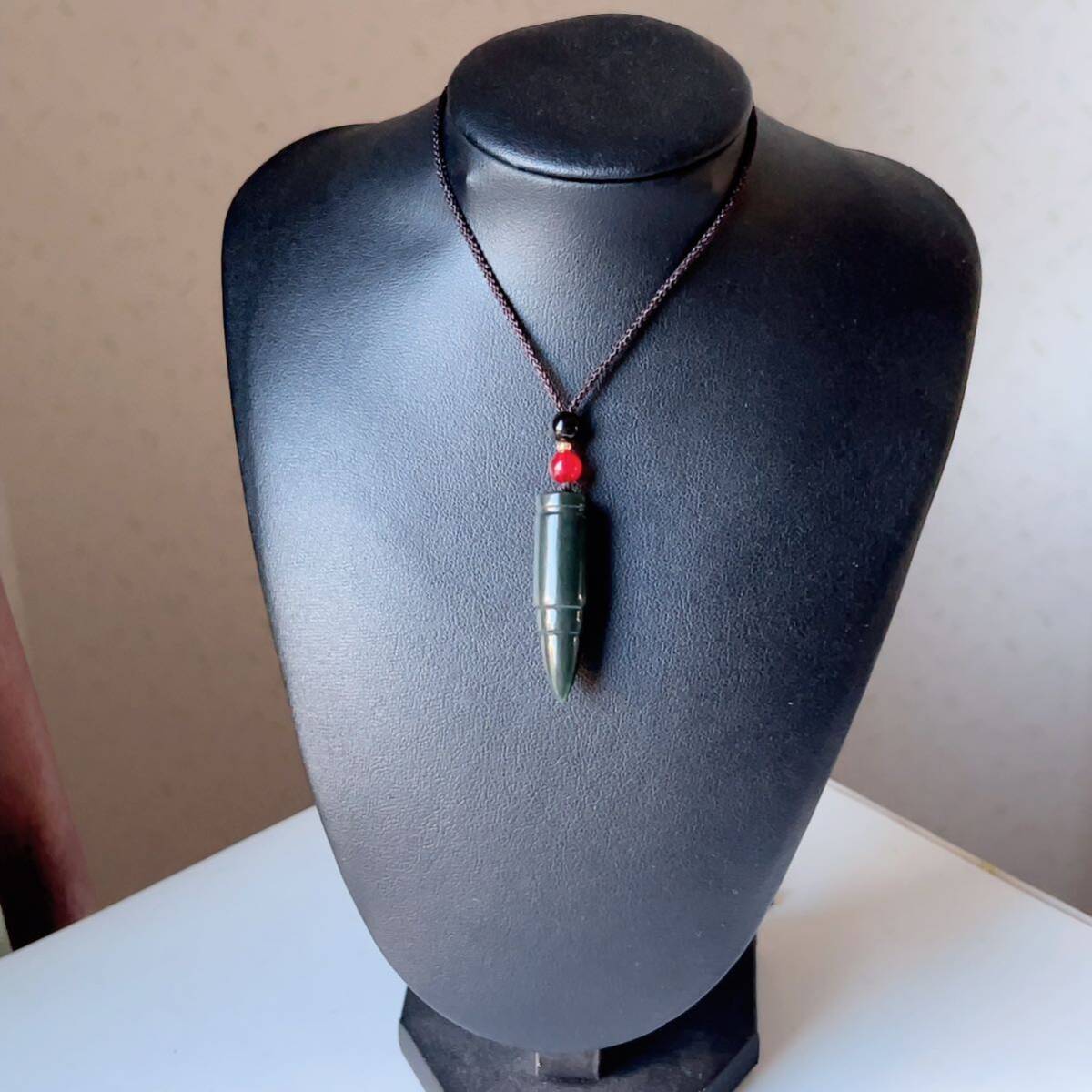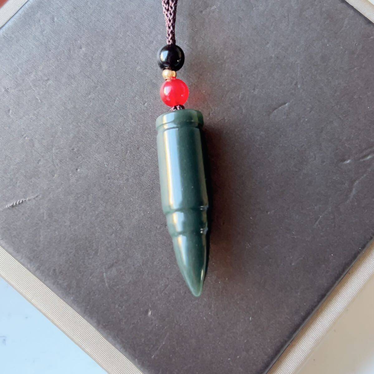 ◇和田玉◇翡翠・ヒスイ◇ネックレスペンダント◇弾丸形 彫刻◇天然石◇パワーストーン◇巾着袋付き◇プレゼントに 028P9234