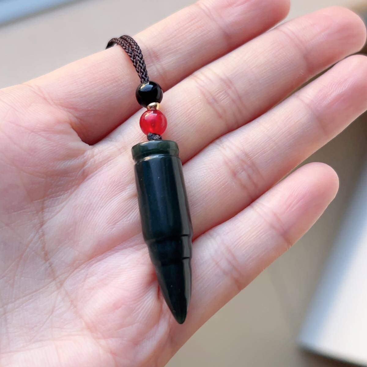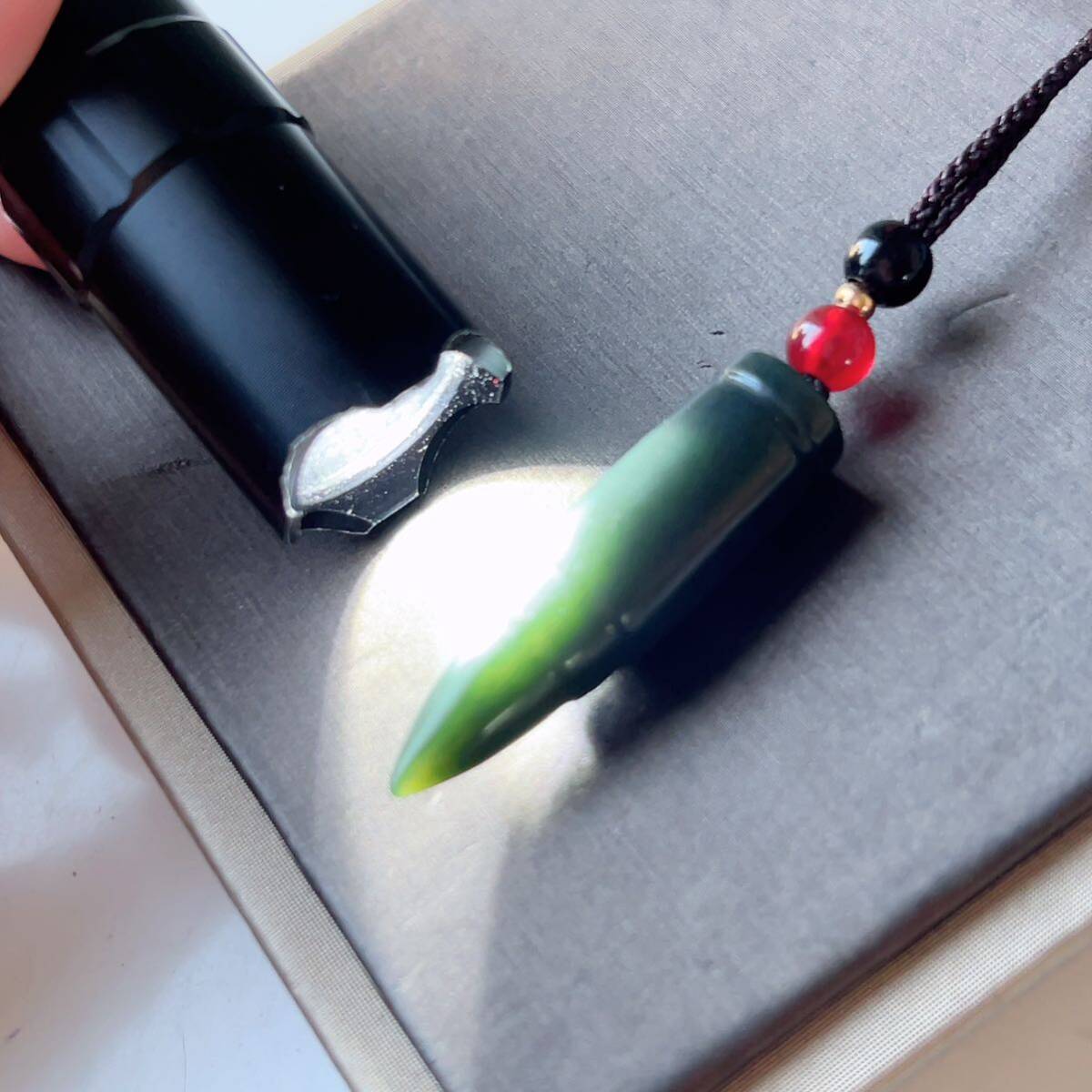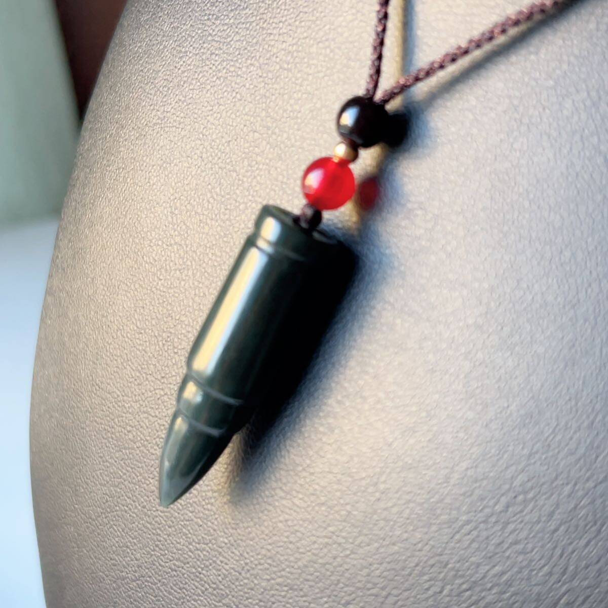 ◇和田玉◇翡翠・ヒスイ◇ネックレスペンダント◇弾丸形 彫刻◇天然石◇パワーストーン◇巾着袋付き◇プレゼントに 028P9234