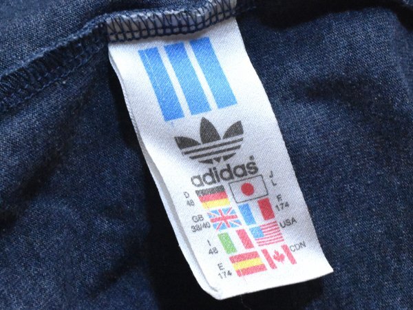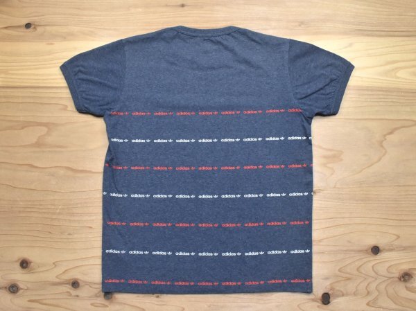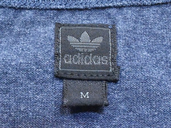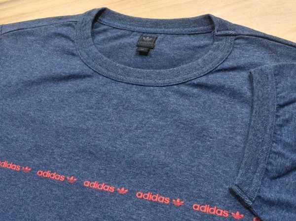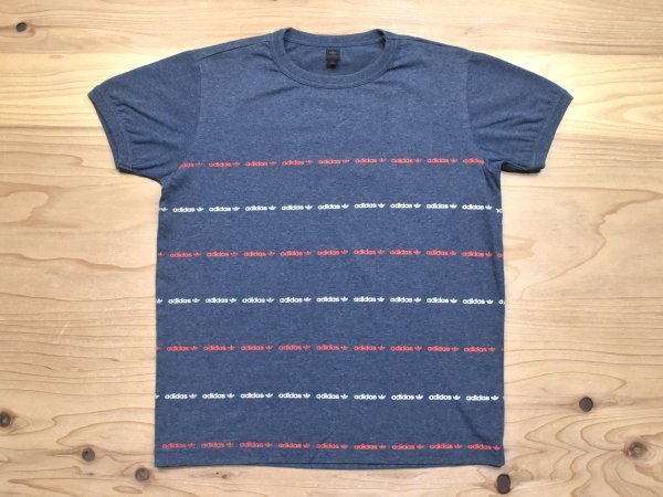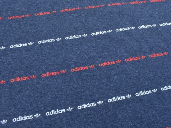 adidasのロゴがボーダー柄になった一枚で、袖口などがリンガー仕様になっています。