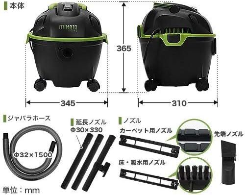 ミナト 乾湿両用 掃除機 バキュームクリーナー 小型 タンク容量10L 水周り掃除 3種類ノズル付属 水洗い再利用可能 ブロワ機能付