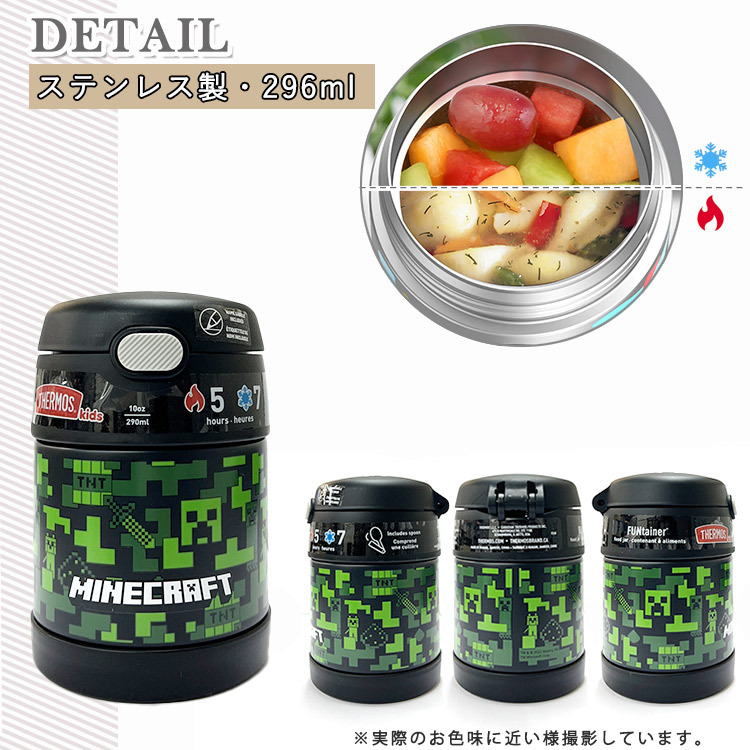 | 仕様 | Thermos ブランドの10オンス FUNtainer Food Jarは、 真空断熱で、熱い食べ物を温かく冷たく保ち、 子供用に設計されており大好きなキャラクターがプリントされています。 ママの自家製スープと一緒にお出かけができ、 離乳食やお昼食時に新鮮でホットなものを楽しめます。 冷たいおやつには、ヨーグルト、ベリー、リンゴ、ピーナッツバターもおすすめです。 FUNtainer のフードジャーは軽量でコンパクト。 プッシュボタン式の蓋が付いているので、持ち運びや開閉が簡単です。 容器には広口があり、スクリュー式の蓋を開けると口は広く食べやすい仕様です。 お手入れは、食洗器対応ですが手洗いをお勧めします。 スプーン付き。 |