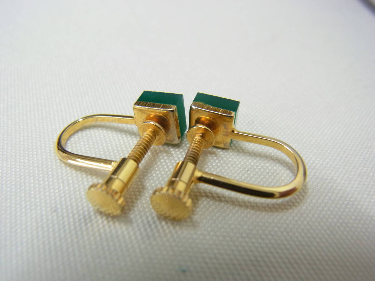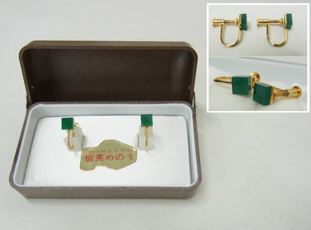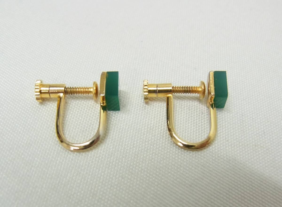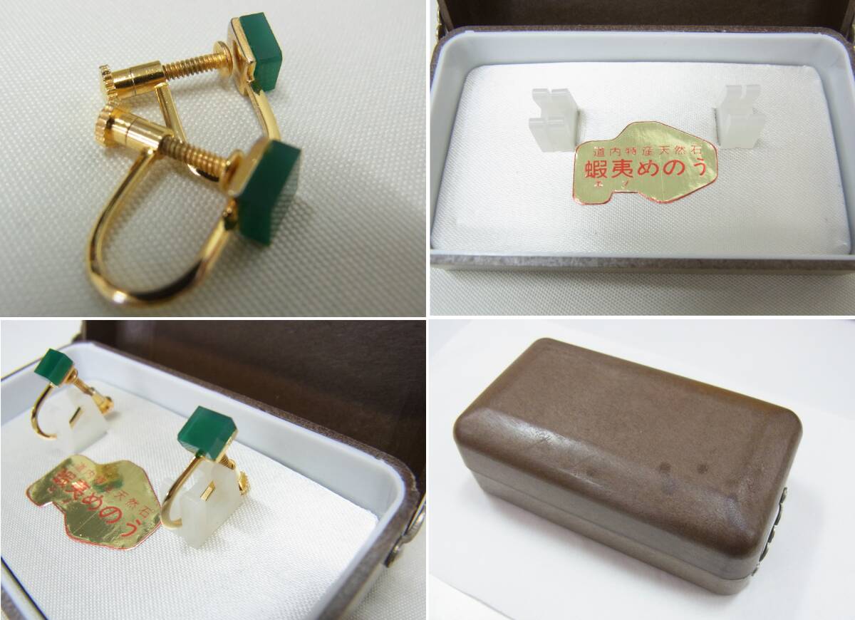 蝦夷めのう イヤリング☆グリーン 緑 瑪瑙 めのう メノウ アゲート 蝦夷 えぞ エゾ ゴールドカラー レトロ ビンテージ 保管品 60 | |||