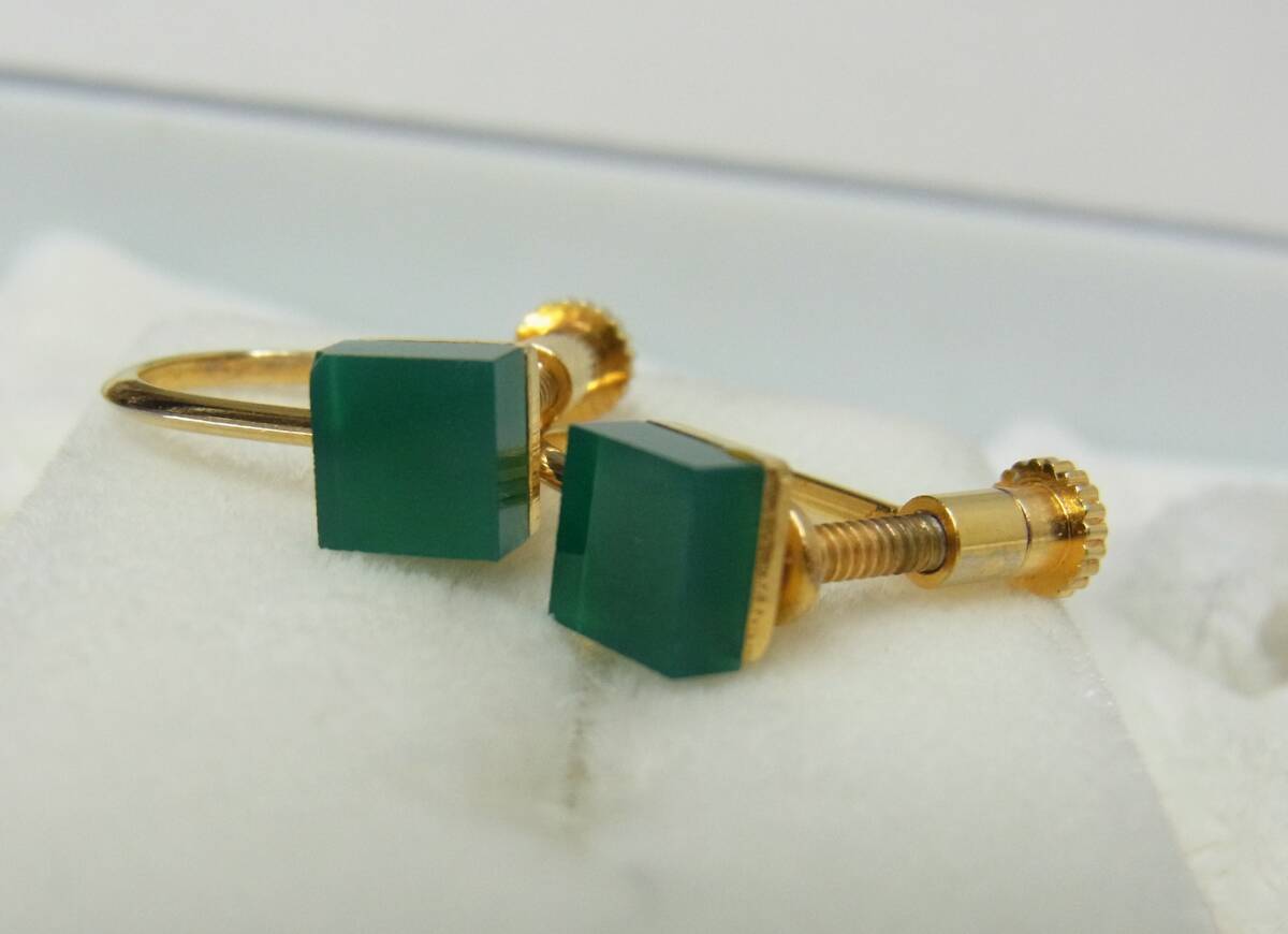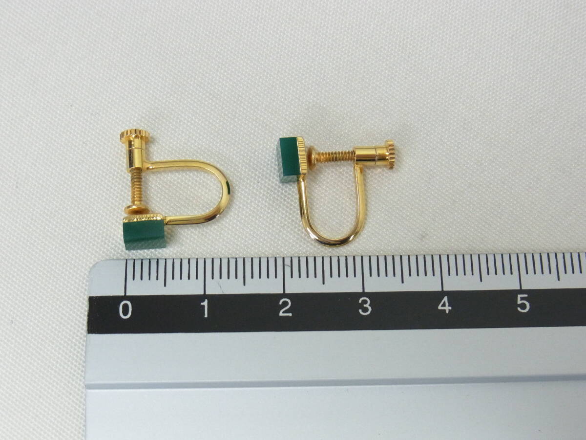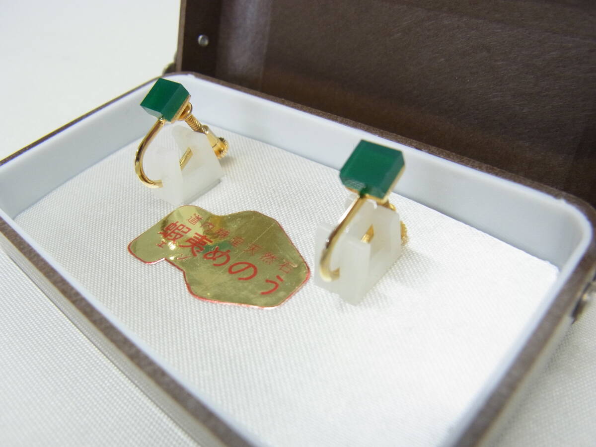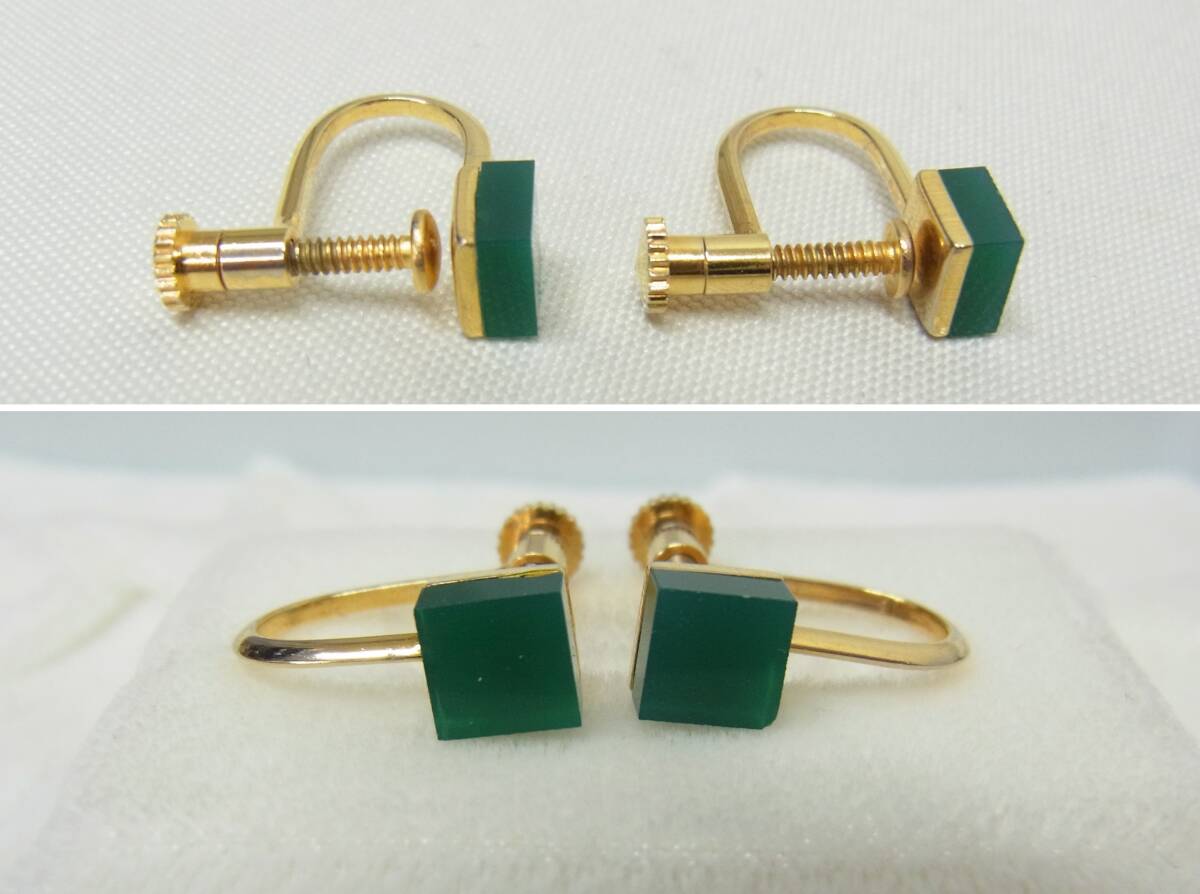 蝦夷めのう イヤリング☆グリーン 緑 瑪瑙 めのう メノウ アゲート 蝦夷 えぞ エゾ ゴールドカラー レトロ ビンテージ 保管品 60 | |||