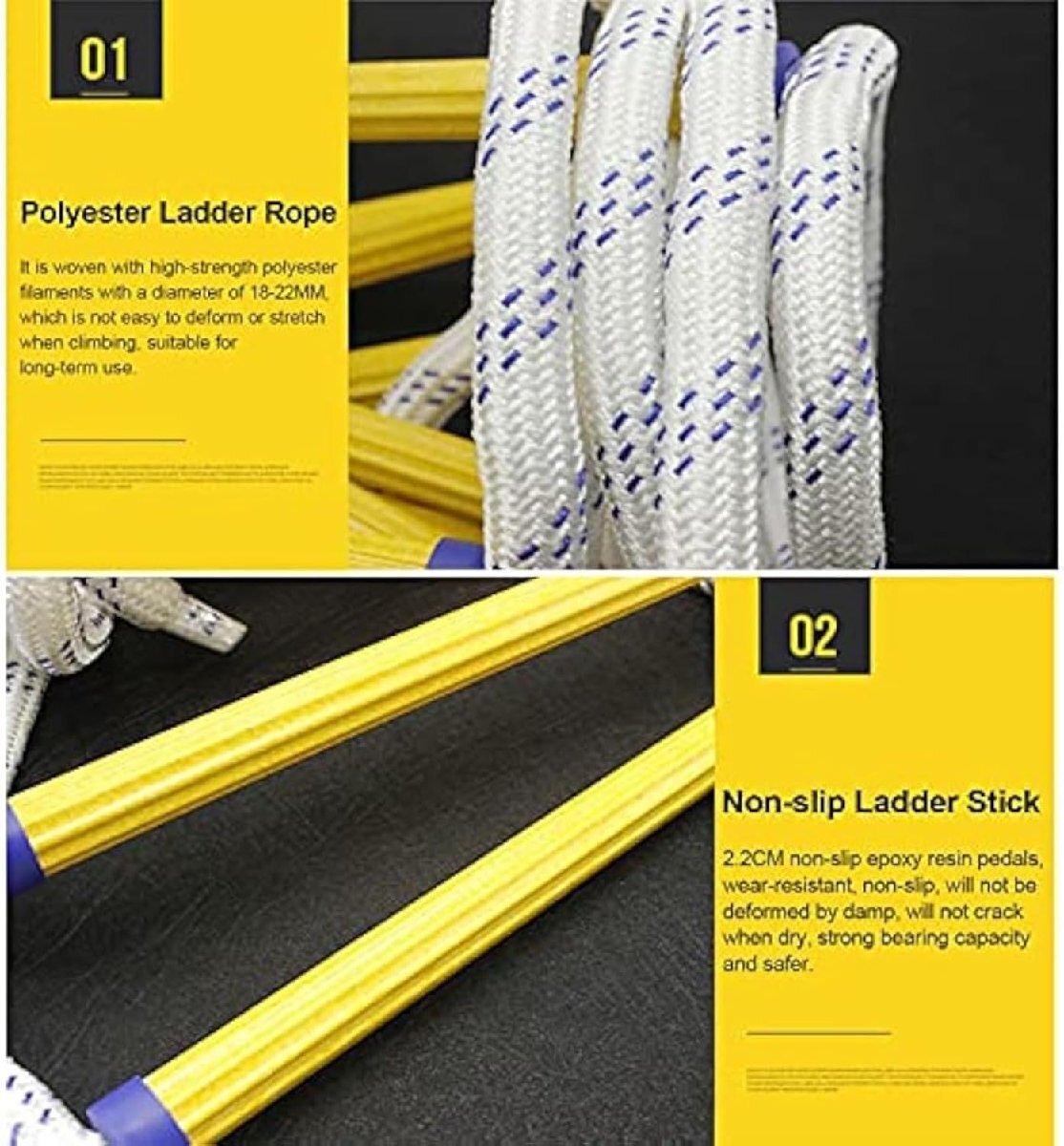 高品質の材質:逃げロープはしごは高強度樹脂と強力なナイロンでできています。これは耐久性があり安定しています。信頼できる安全装置であり、強い負荷容量があります。それはバッグに都合よく保管することができ、持ち運びが簡単です。