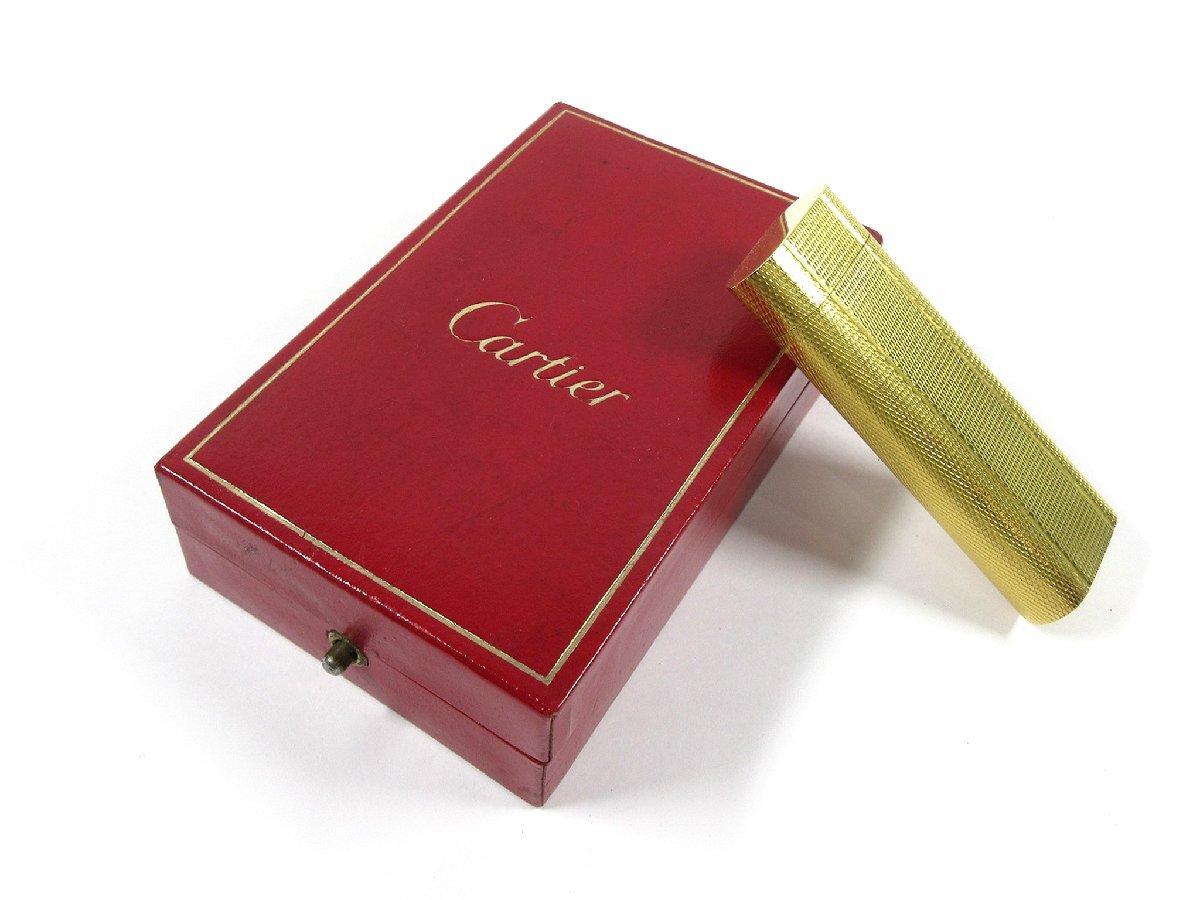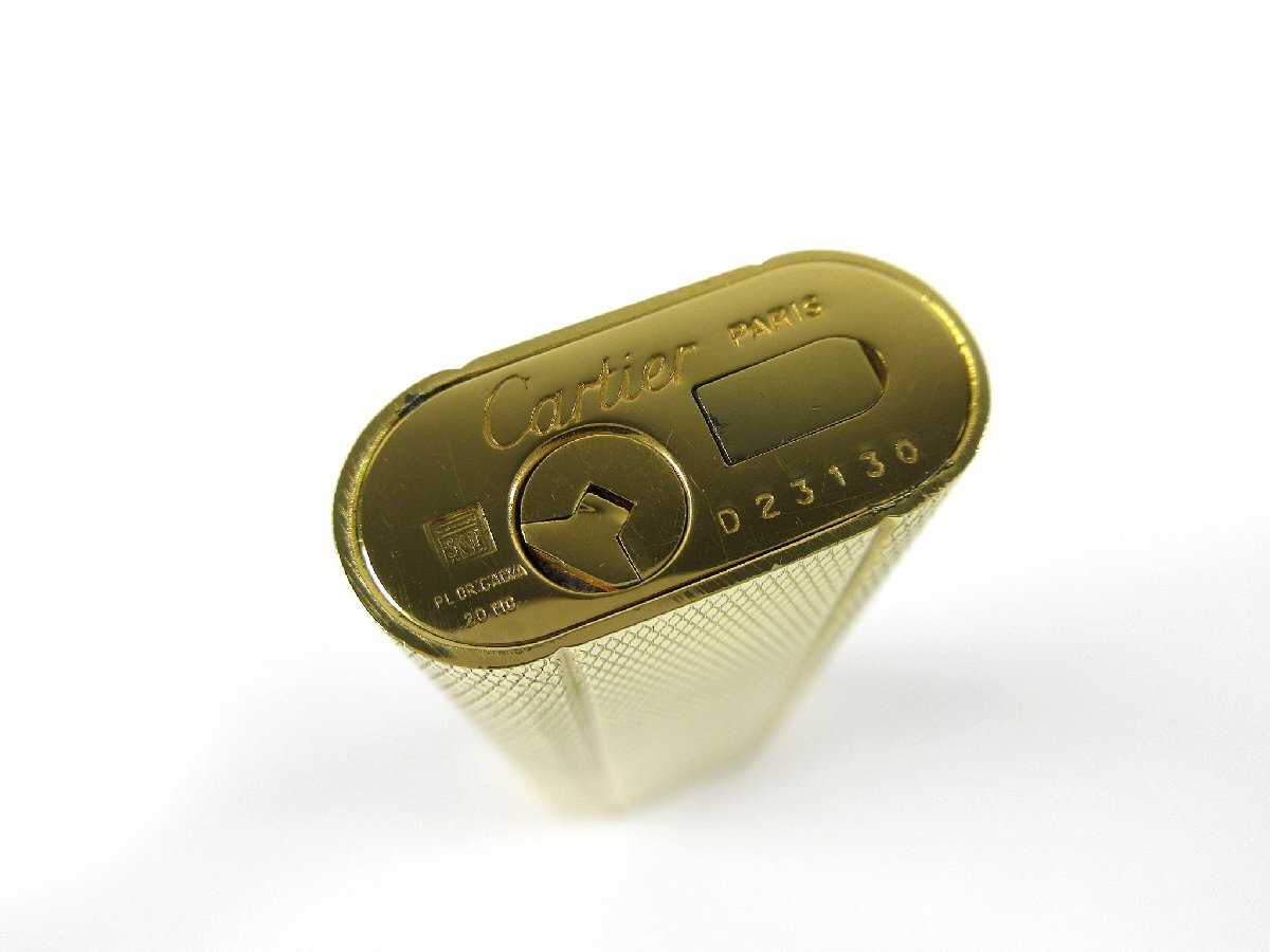 【カルティエ】ヴィンテージ オーバル ウロコ柄 デザイン ローラー ガスライター ゴールド 金張り 箱付 CL8