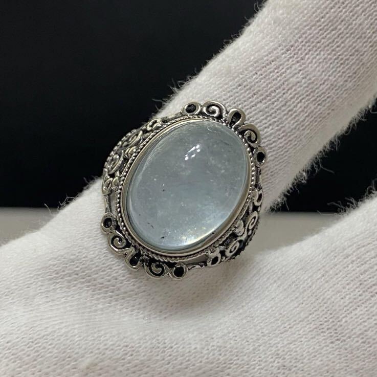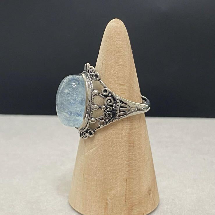 C208 アクアマリン 指輪 フリーサイズ 真鍮素材