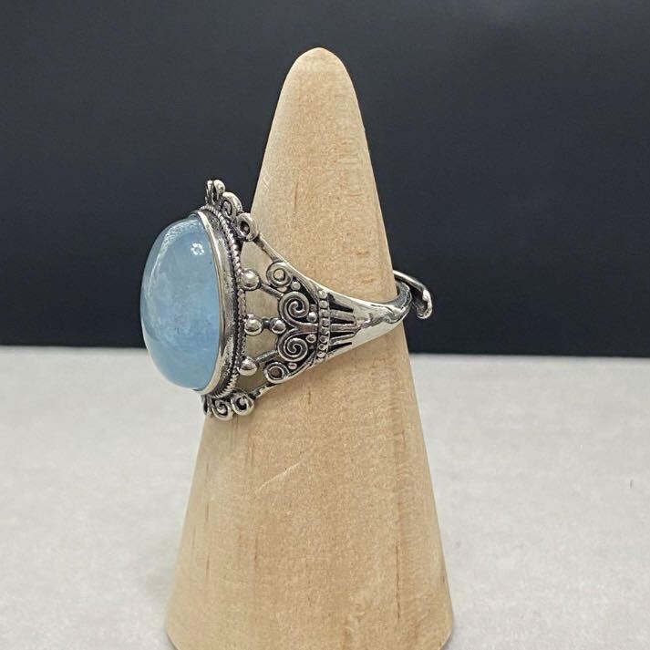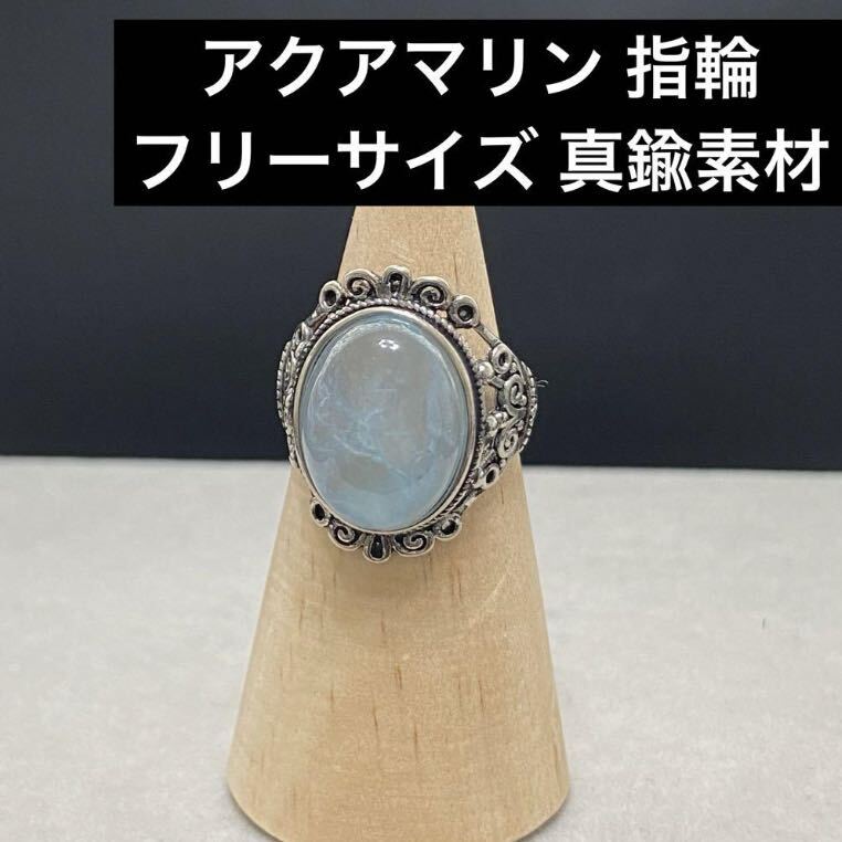 C205 アクアマリン 指輪 フリーサイズ 真鍮素材