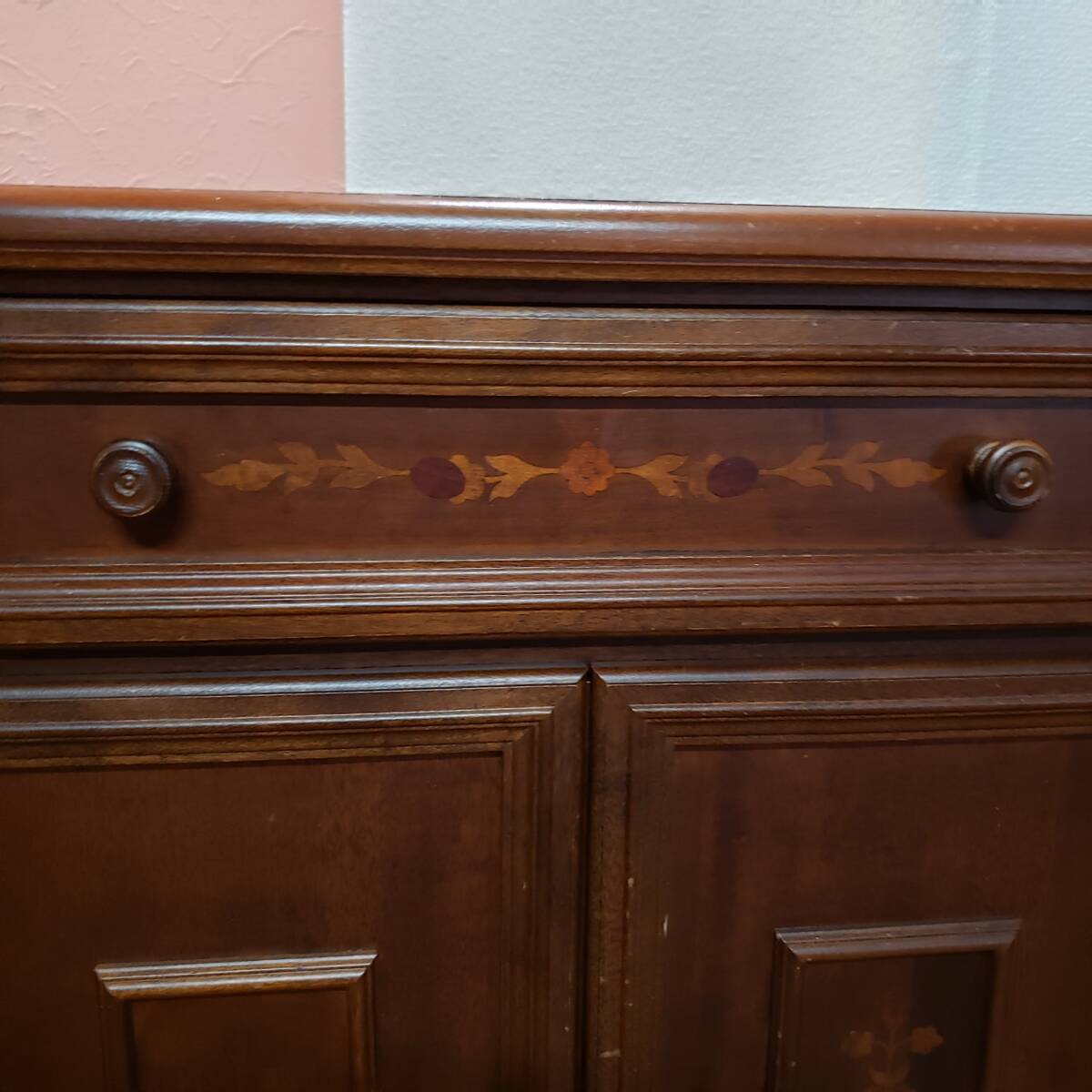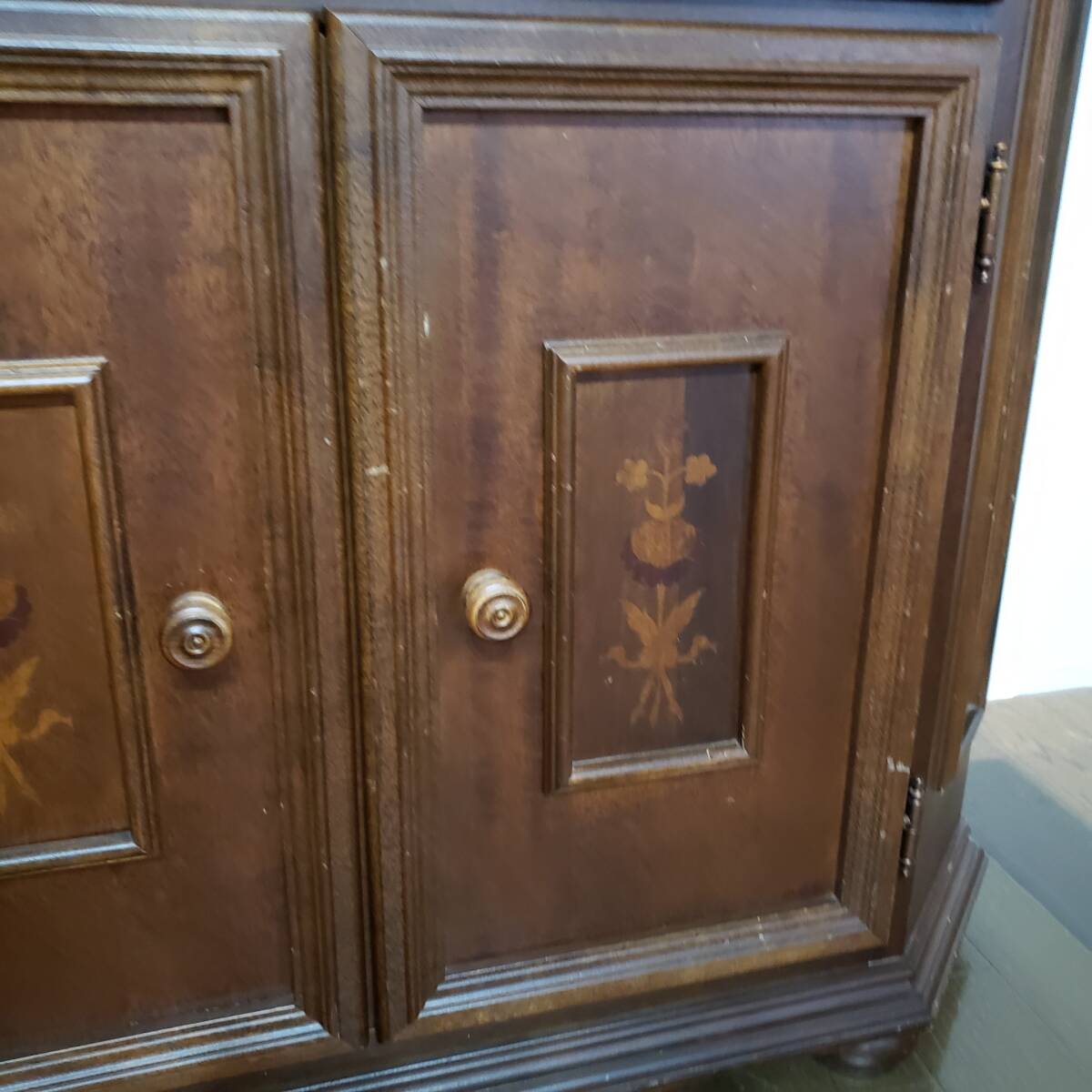 K-197 イタリア製 輸入家具 サイドボード コンソール リビングスタジオ クラシック 象嵌 アンティーク 幅99cm 奥行33.5cm 高さ80cm