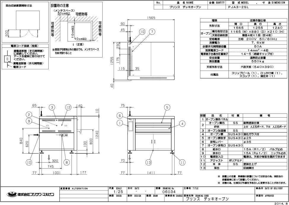 オーブン庫内有効寸法:1165 (W)×880(D)×210 (H)