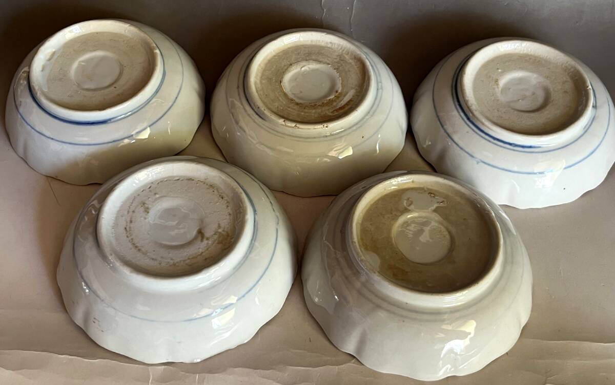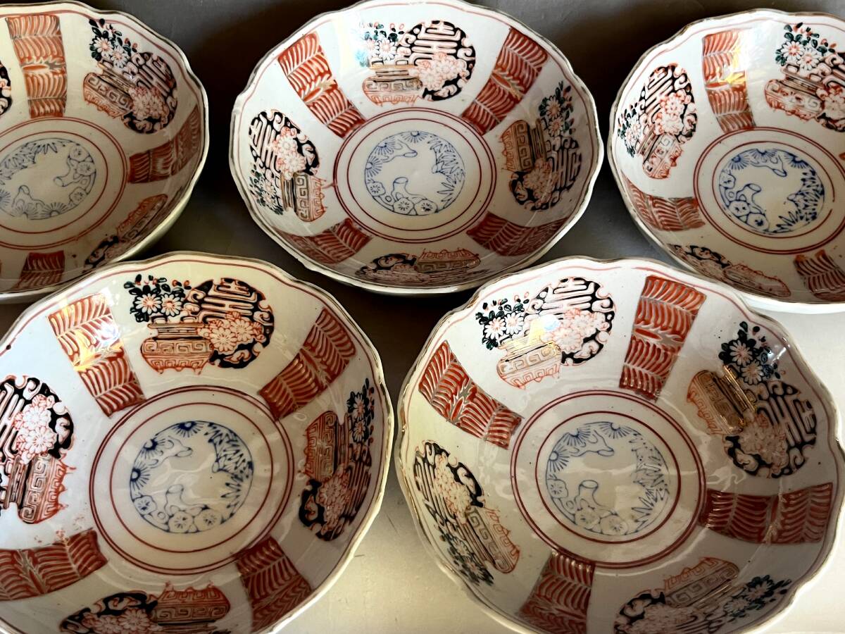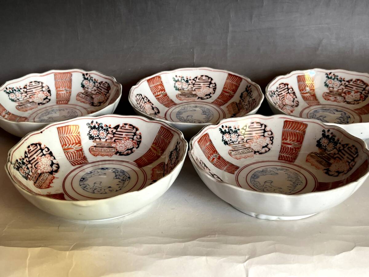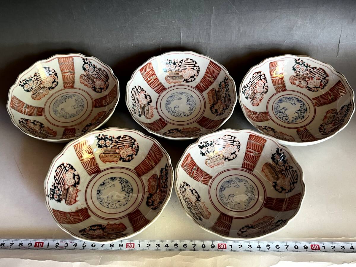 鉢■なます皿 赤絵 印判膾皿5客 蛇の目高台 中皿 膾鉢(明治~大正期)古美術 時代物 骨董品■