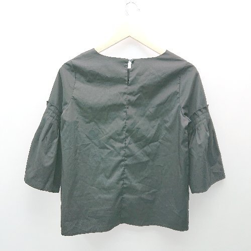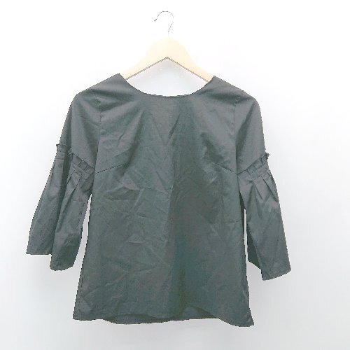 ◇ ARCHIVES オフィスカジュアル シンプル フリル フレア 七分袖 カットソー サイズM ブラック レディース E