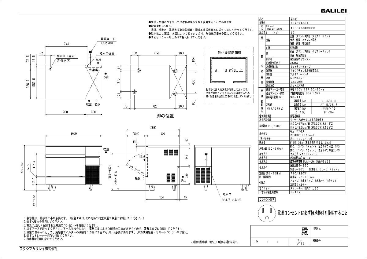 商品名:製氷機 95kgタイプ