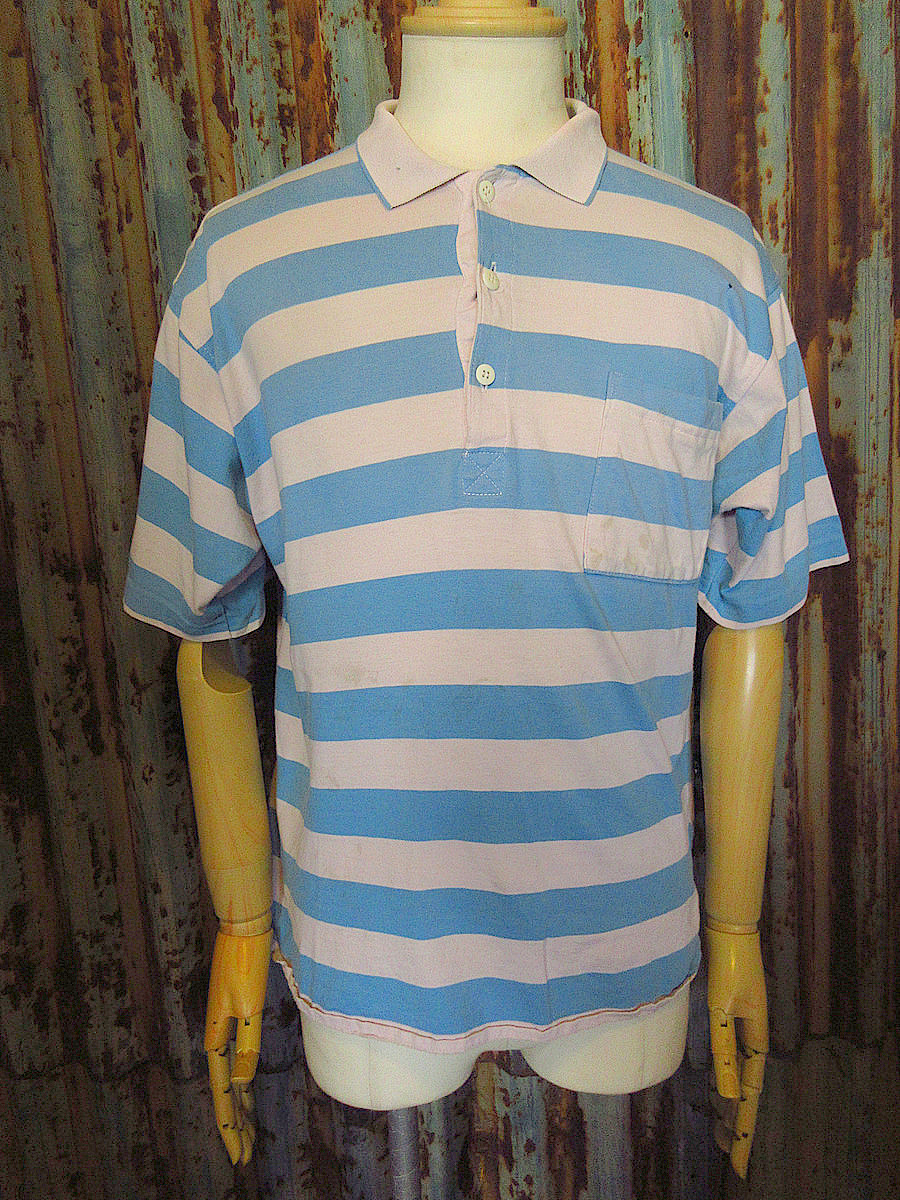1990's GOTCHAコットンボーダーポロシャツ白×水色size S