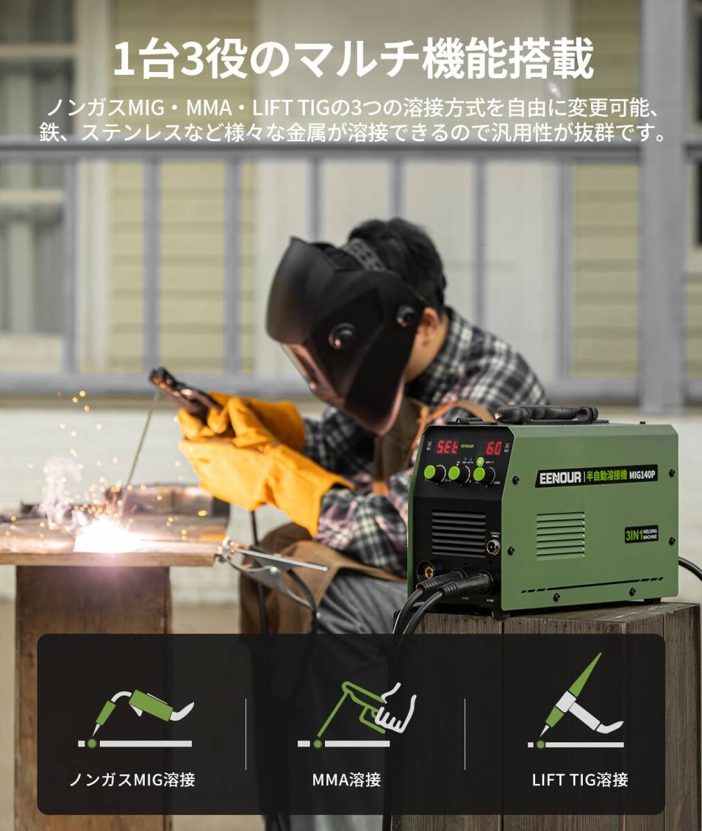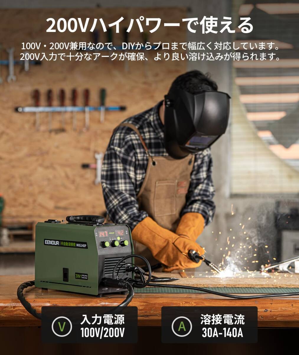 【DIY 建設現場に大活躍】半自動溶接機 最大出力140A 100V・200V兼用 1台3役 アーク溶接機 家庭・業務両用