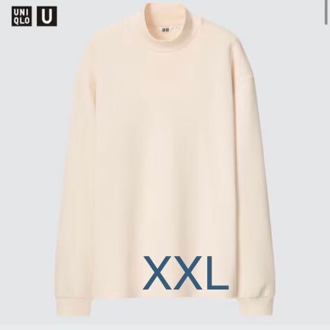 ★新品★ユニクロUモックネックプルオーバー長袖カットソートップスUNIQLO UオフホワイトnaturalナチュラルXXLサイズ3LサイズTシャツ2XL