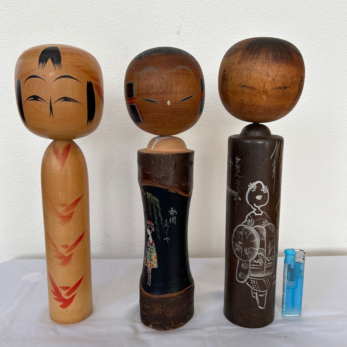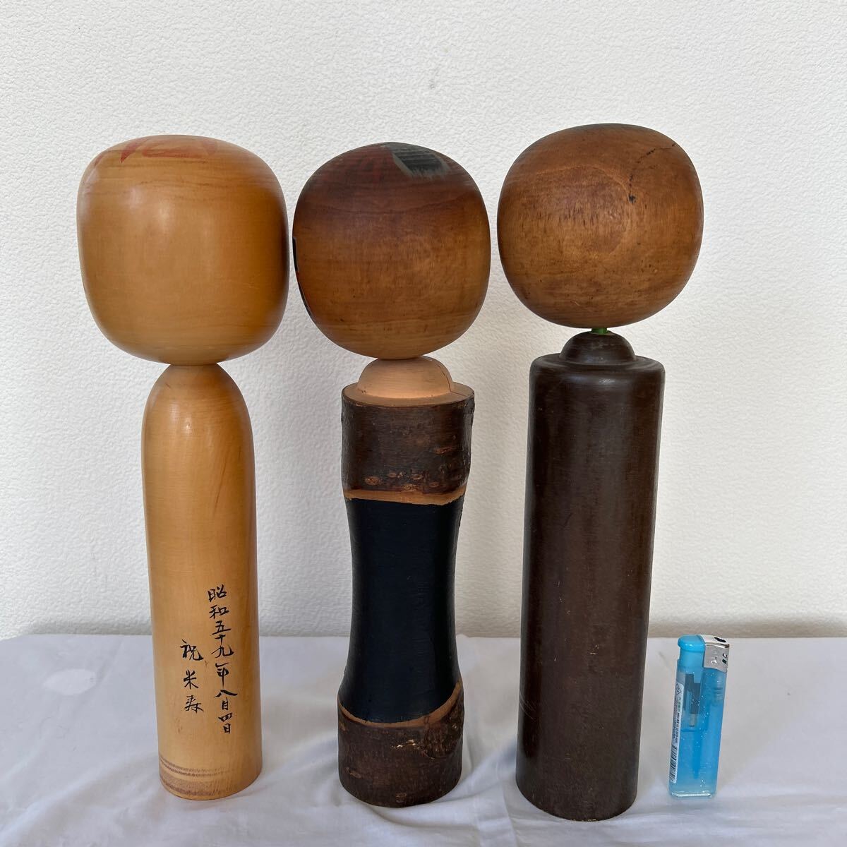 古い物となりますので、変色、擦れ、1本のこけしに ひび割れ見られます。