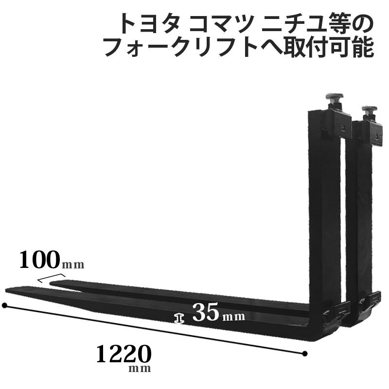 送料無料 フォーク 爪 フォークリフト用フォーク 標準フォーク 2本セット 長さ約1220mm 幅約100mm 厚さ約35mm 耐荷重約1.8T