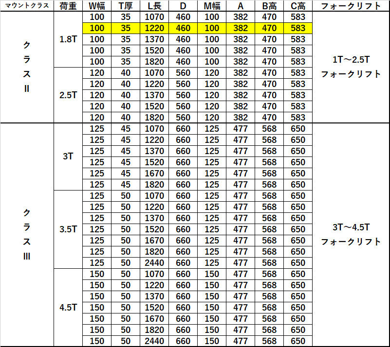 ※お取り付けに関しては、フォークリフト及びフォークの仕様、寸法をよくご確認ください。