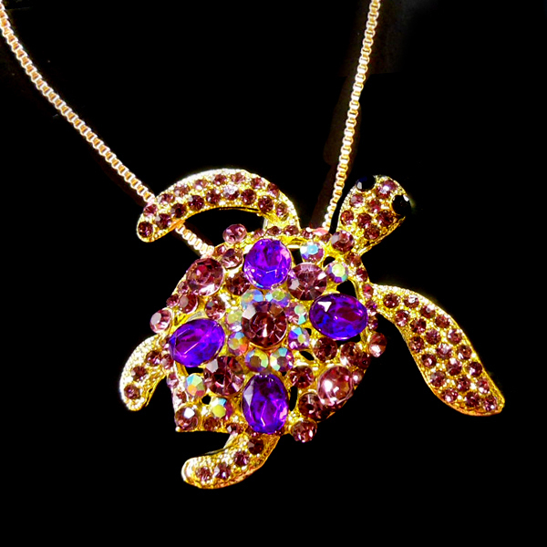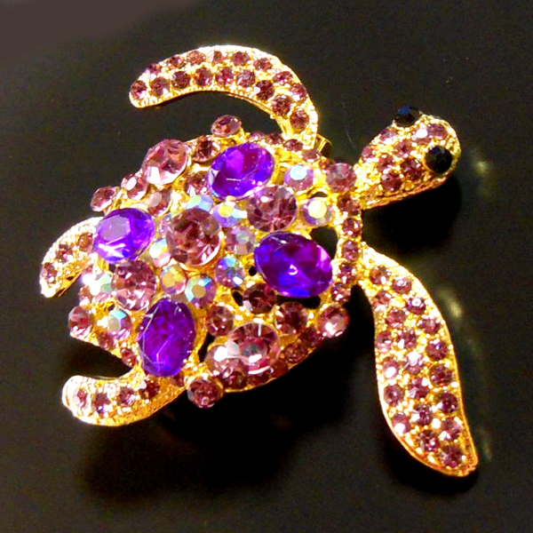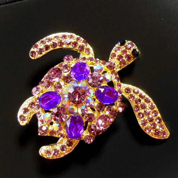 Colorful Crystal Diamante Brooch ***キラキラ★ホヌ*** オーストラリアクリスタル&ラインストーンピンブローチ[パープル] |