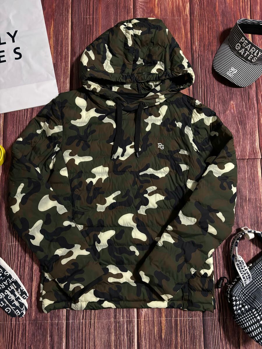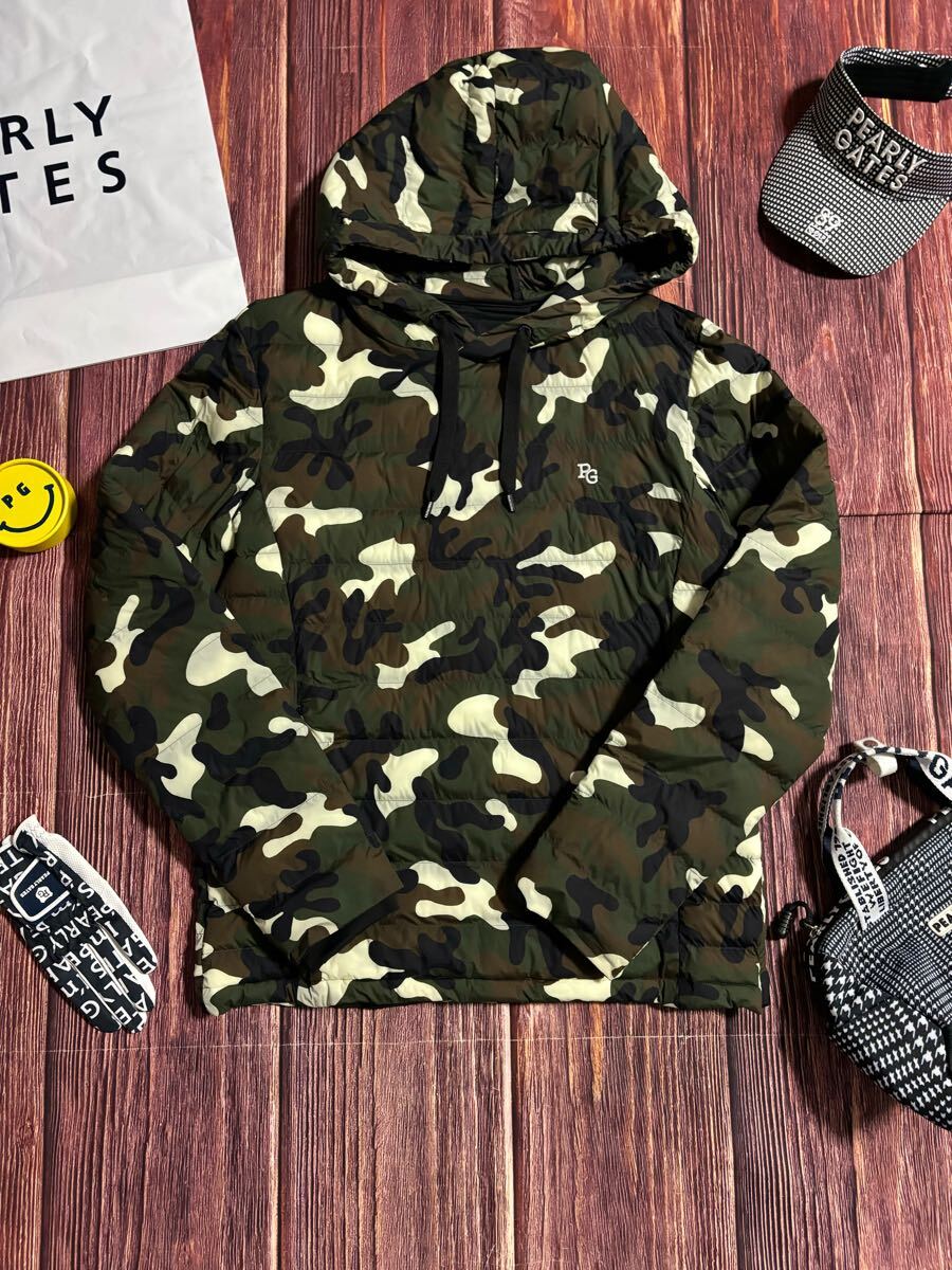 パーリーゲイツ ショップ 超人気完売 BIGロゴ カモフラ 迷彩 中綿 PRIMALOFT プルオーバー フーディー ブルゾンです!