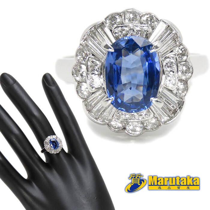 商品名 | 送料無料 Pt900 1.83ct ブルーサファイア ダイヤモンドリング 12号 指輪 鑑別書付 逸品質屋 丸高 23k75-6 | ||