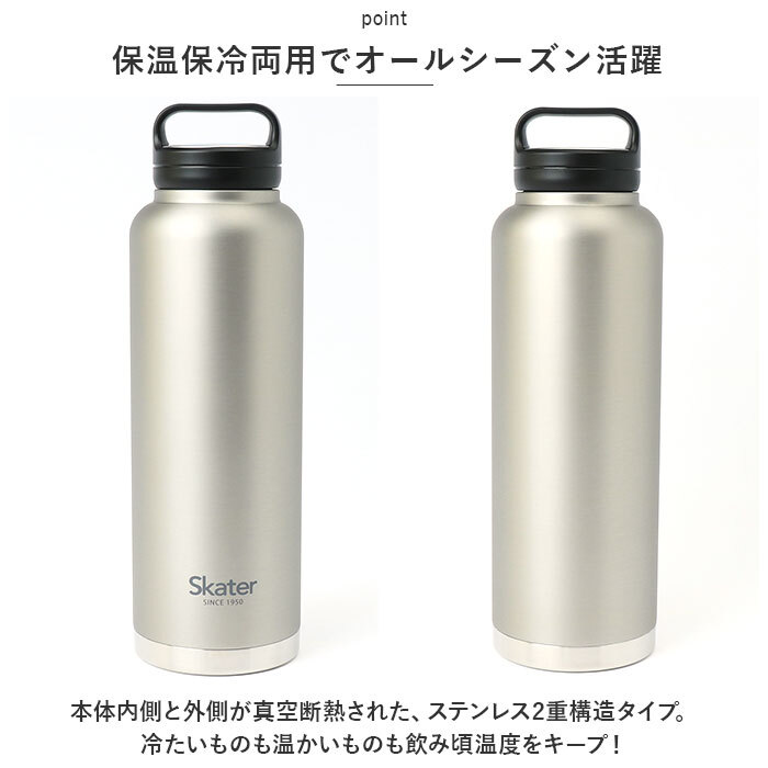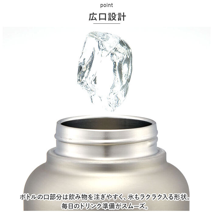 商品説明 | ・・ハンドル付きで持ち運びラクラク!ステンレス製の「スクリューハンドル マグボトル」1500mlサイズが新登場。 ・【保温保冷両用でオールシーズン活躍】 ・本体内側と外側が真空断熱された、ステンレス2重構造タイプ。冷たいものも温かいものも飲み頃温度をキープ! ・【シンプルなつくり】 ・フタを取ってゴクゴク飲める直飲み仕様。パーツが少なく、お手入れも簡単。 ・【広口設計】 ・ボトルの口部分は飲み物を注ぎやすく、氷もラクラク入る形状。毎日のドリンク準備がスムーズ。 ・【たっぷり入る1500mlサイズ】 ・こまめな水分補給が欠かせない夏のお出かけ、レジャーやアウトドアシーンで大活躍。家族分一緒に持ち歩ける大容量サイズ。 ・【便利なハンドル付き】 ・持ち歩きや屋外でのトレーニングにも最適。バッグの中に入れても取り出しラクラク! ・【スタイリッシュなデザイン】 ・年代問わず持ちやすい、落ち着きのあるカラーリング。家族でシェアもOK。 |