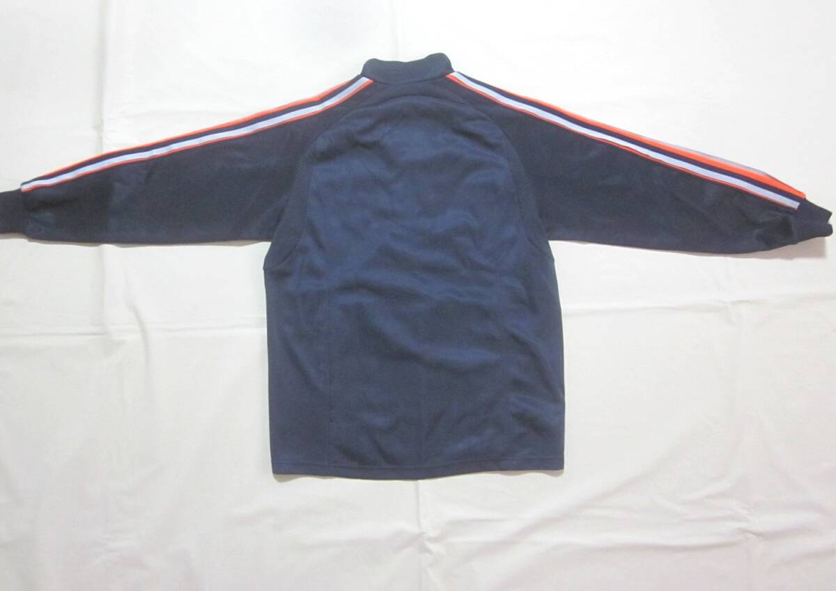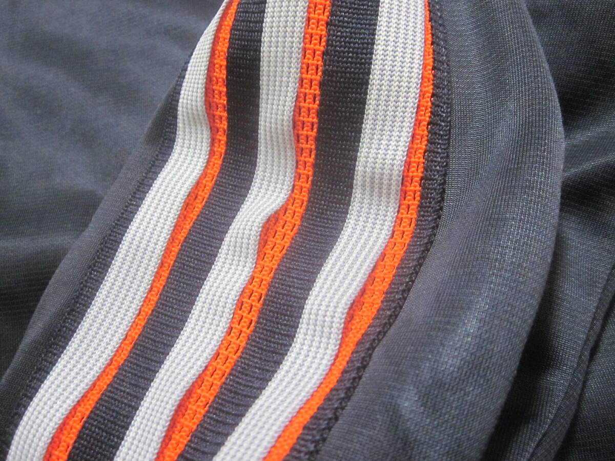 ・色 濃紺×3本線(薄グレー・オレンジ)。胸ロゴ刺しゅう。