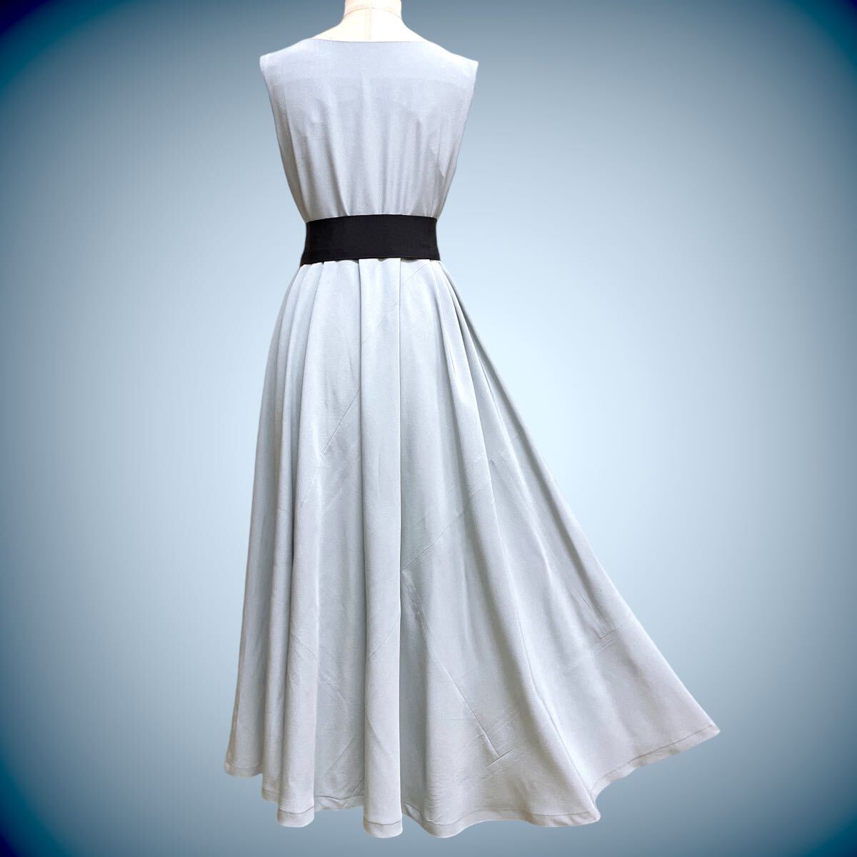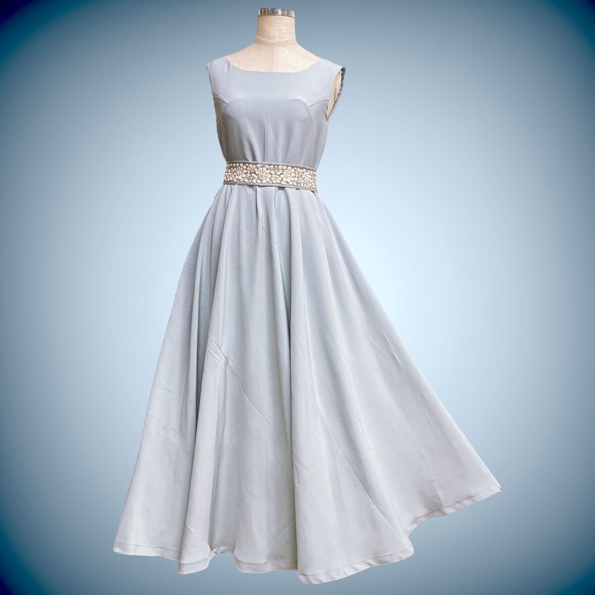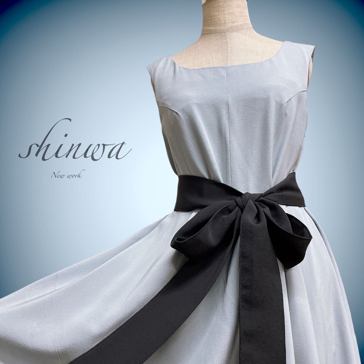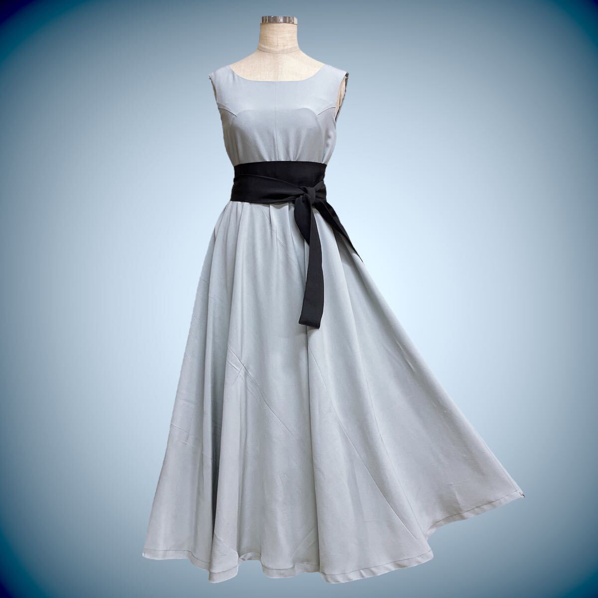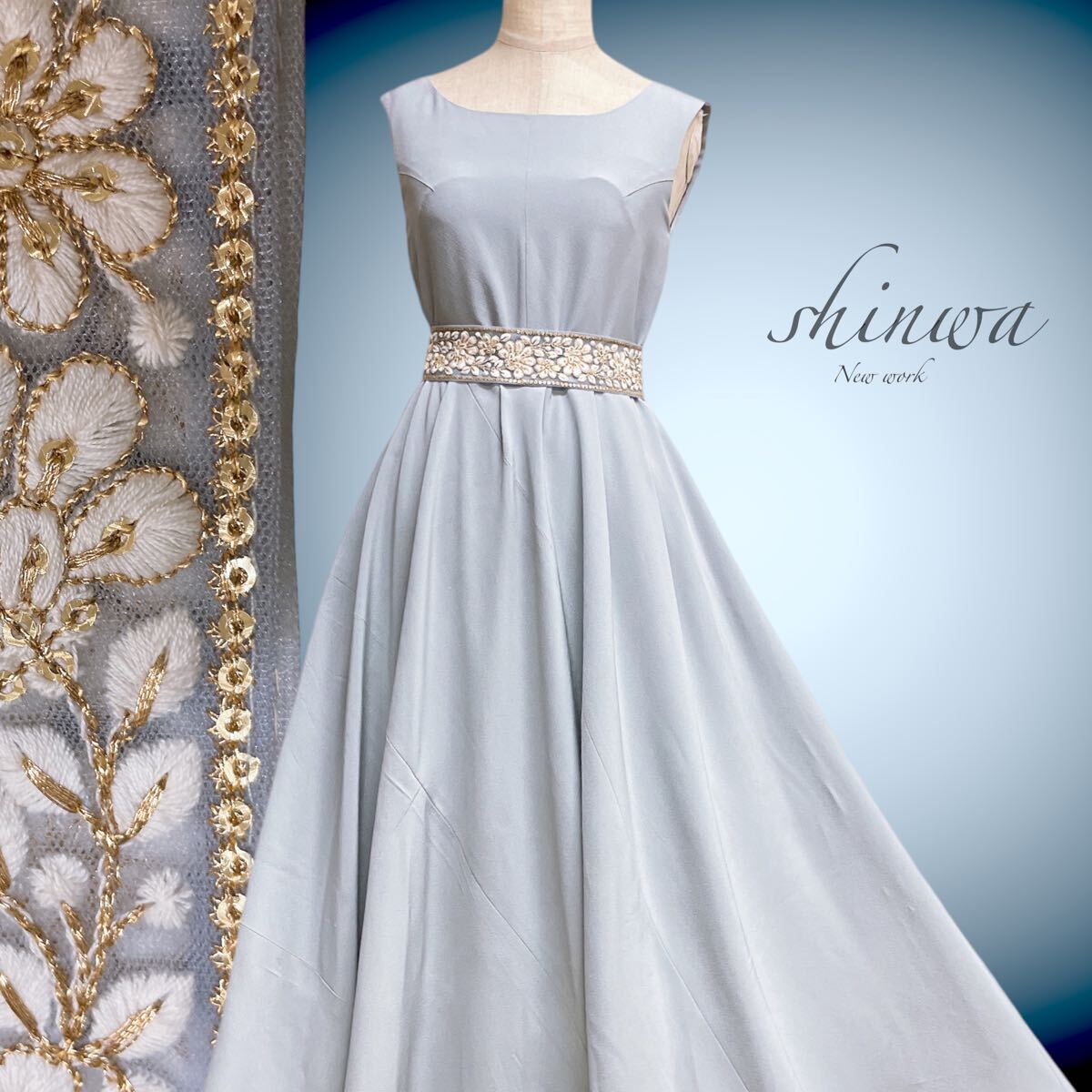 【心和】刺繍ベルト フレアーロングワンピース ベルト2本付き 着物リメイク Mサイズ N610