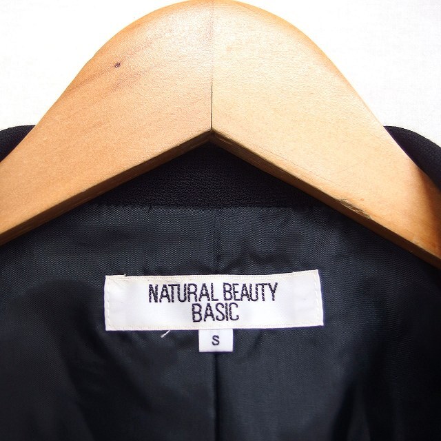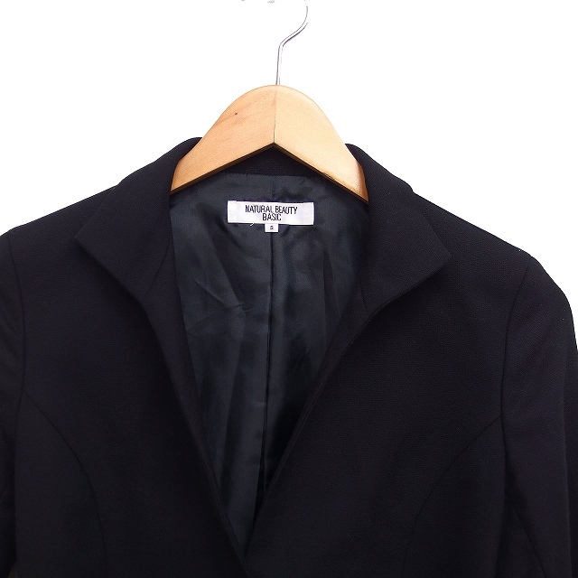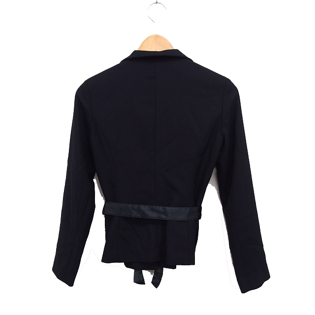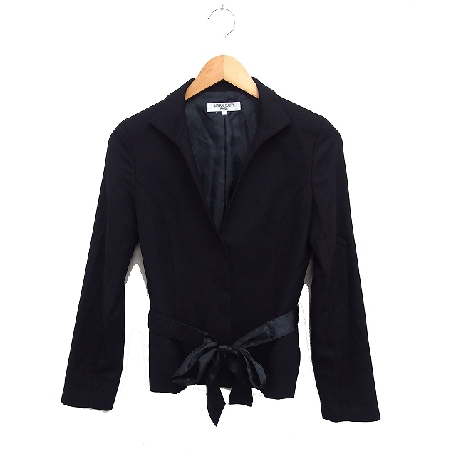 ナチュラルビューティーベーシック NATURAL BEAUTY BASIC トライアングルカラー ジャケット リボン 無地 ウール S 黒 /FT15 レディース