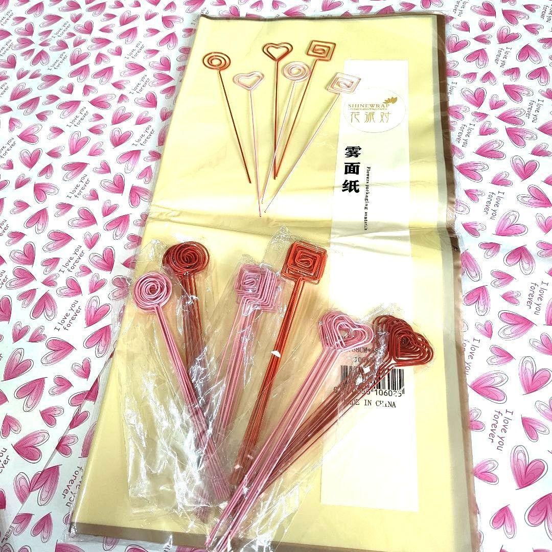 フラワーアレンジメント用 メッセージピック6種、54本+花束用防水ペーパー40枚
