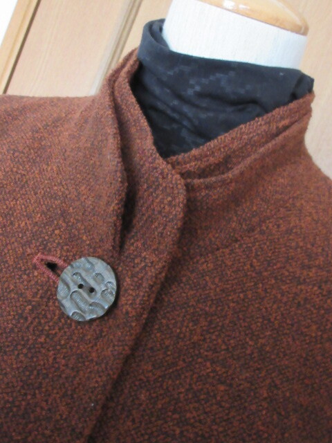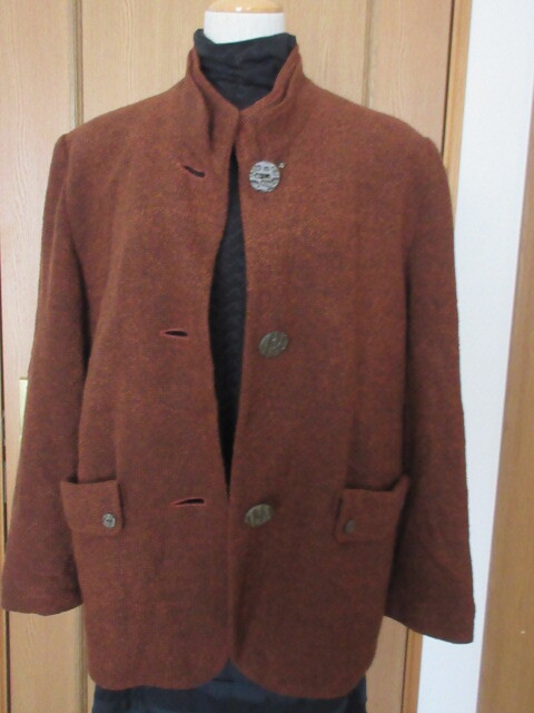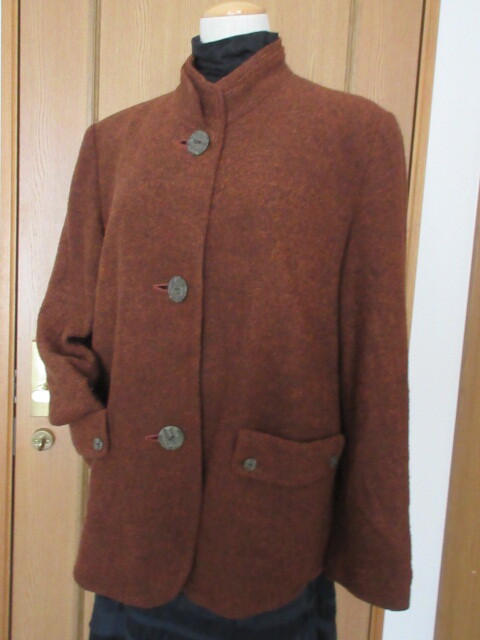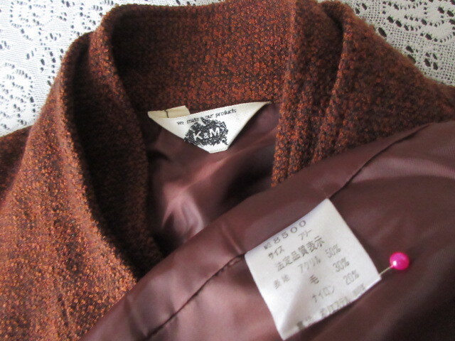 B)■日本製■【K&M】■凸凹ツイード/毛30%アクリル50%■2枚襟デザイン/大きなボタン/便利ポケット■暖かで・お洒落なジャケット■