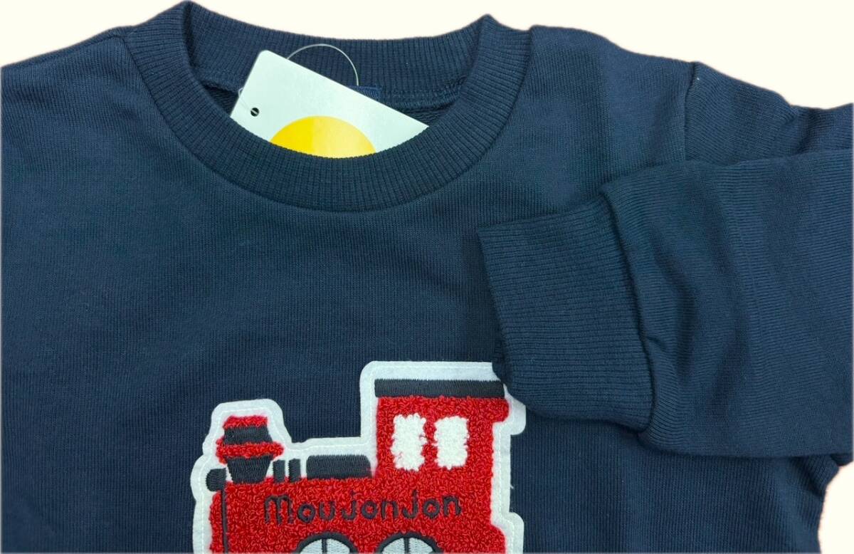 即決 新品タグ付 Moujonjon ムージョンジョン★さがら刺繍 機関車 裏毛 トレーナー★お手頃価格★子供 110cm 5-6才 ¥2200