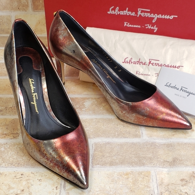 美品 フェラガモ レザー ポインテッドトゥ パンプス 5D イタリア製 Salvatore Ferragamo | |