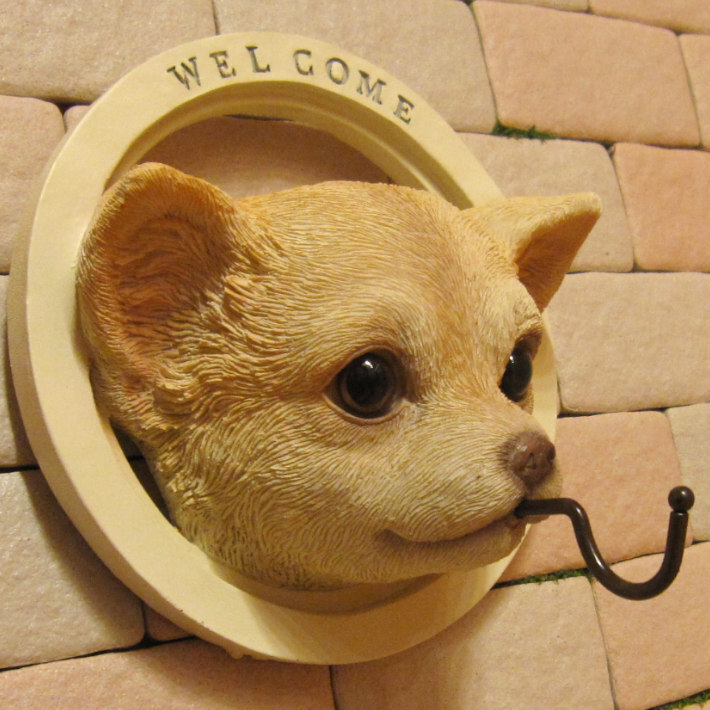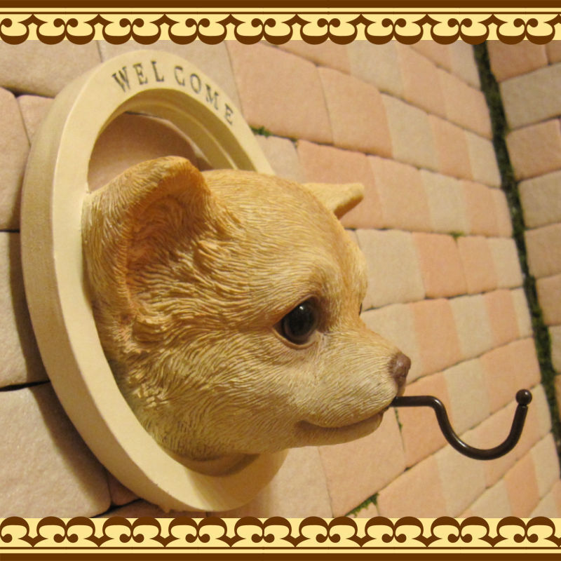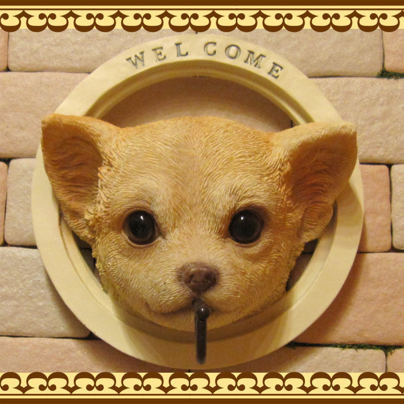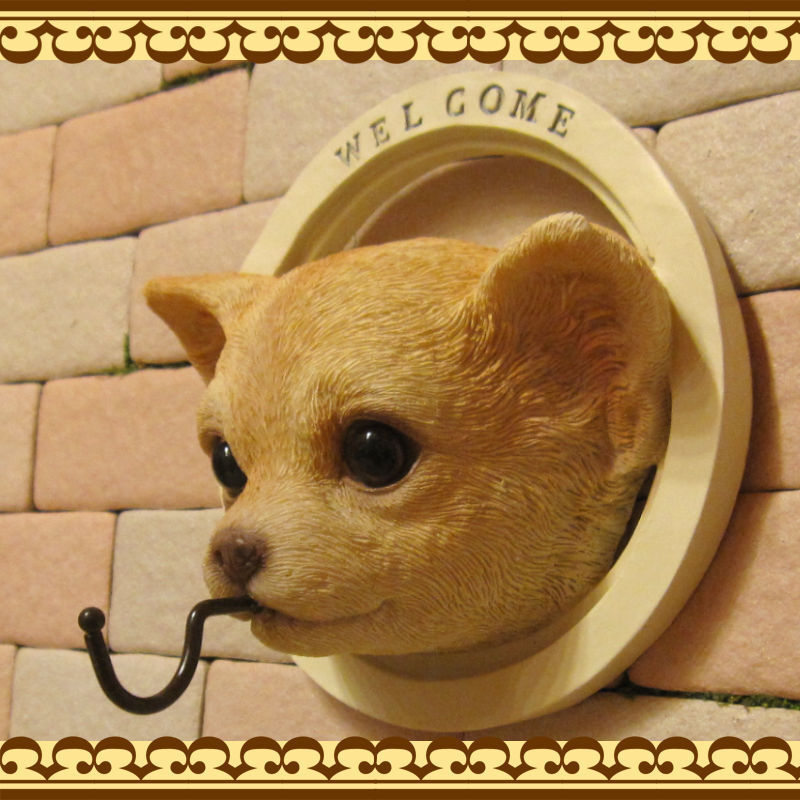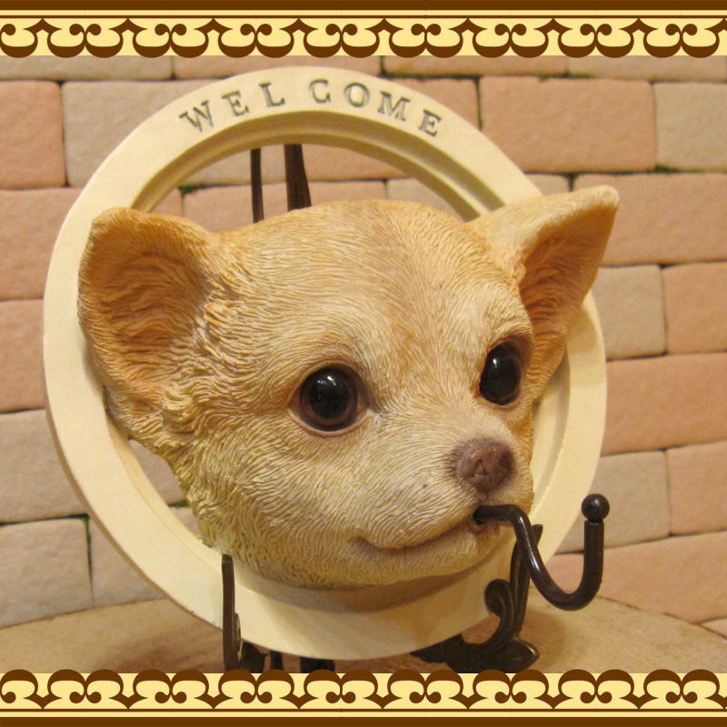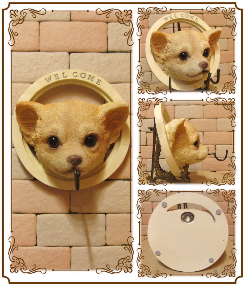 置物 動物 可愛い 犬の置物 リアルなイヌのウォールフック チワワ ドッグ オブジェ 壁掛け ガーデニング 玄関先
