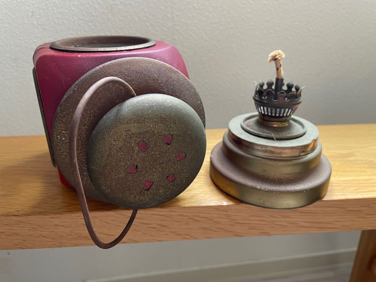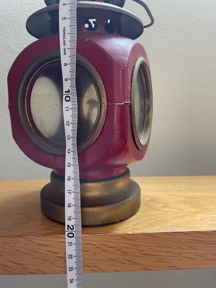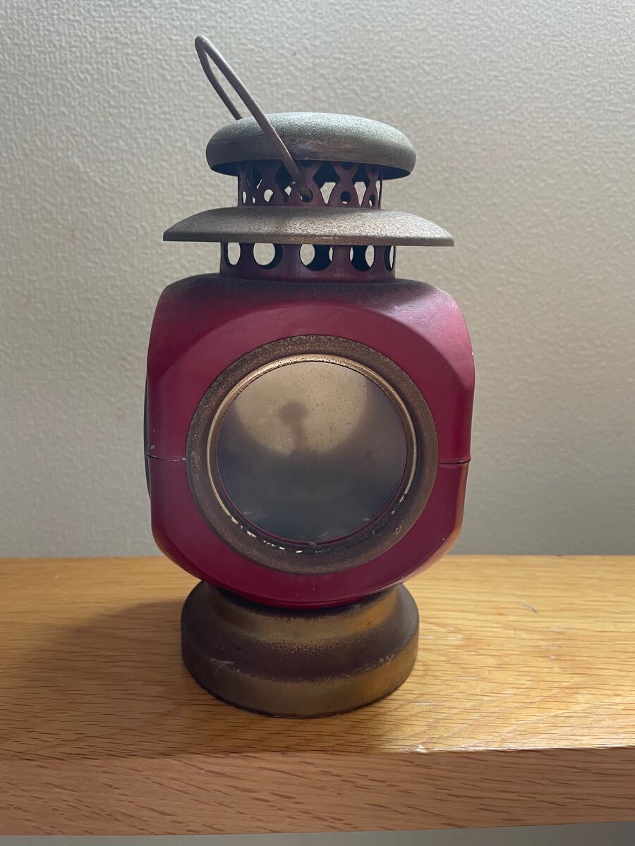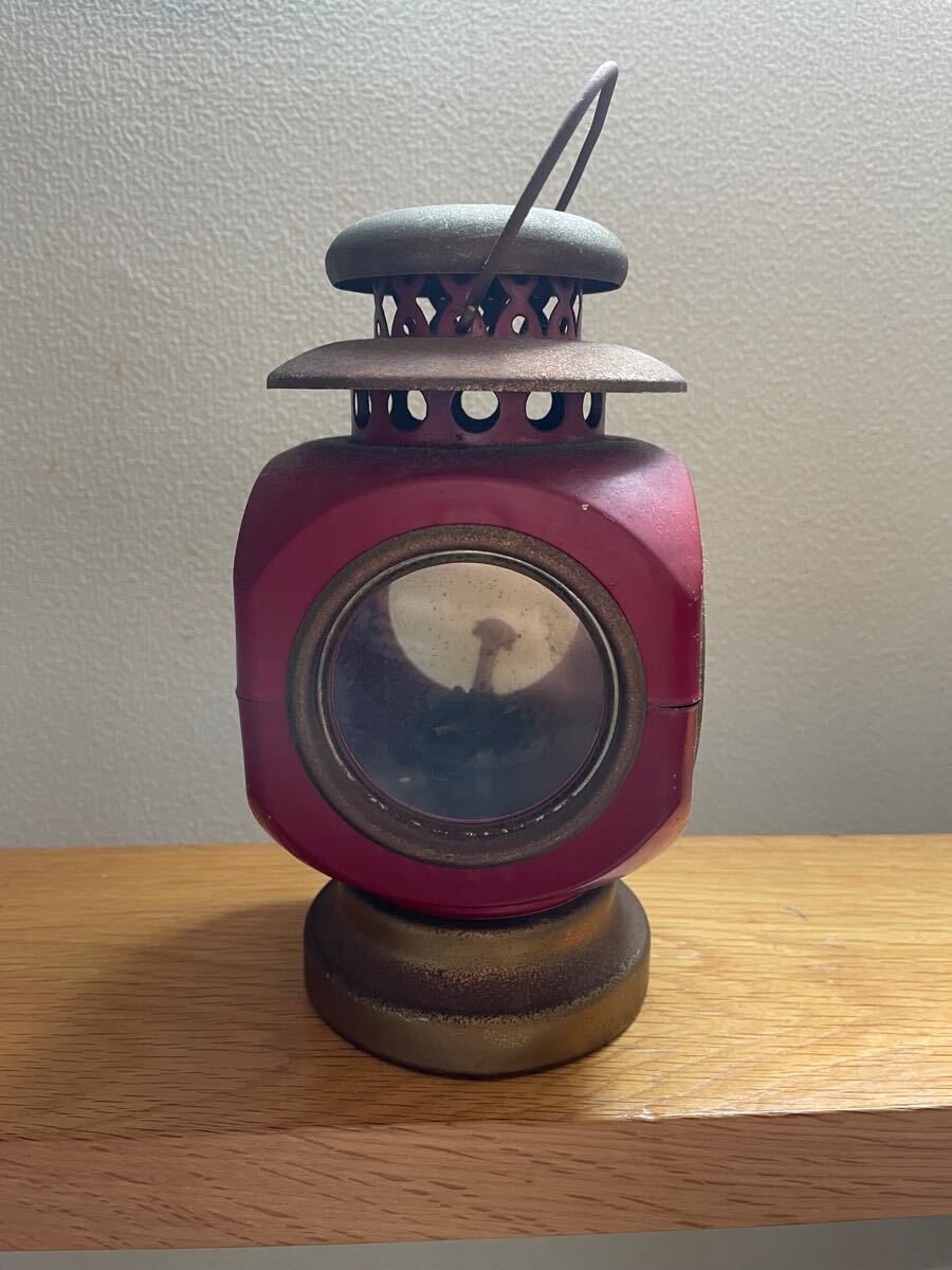 赤色のランタンです。サビはありますがまだまだ使用していただけます。サイズ等は画像でご確認いただければと思います。