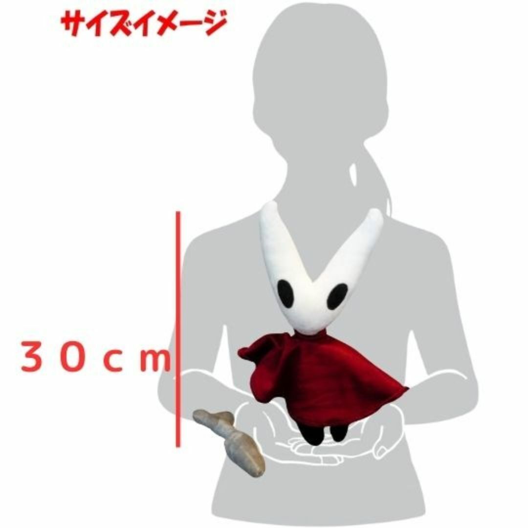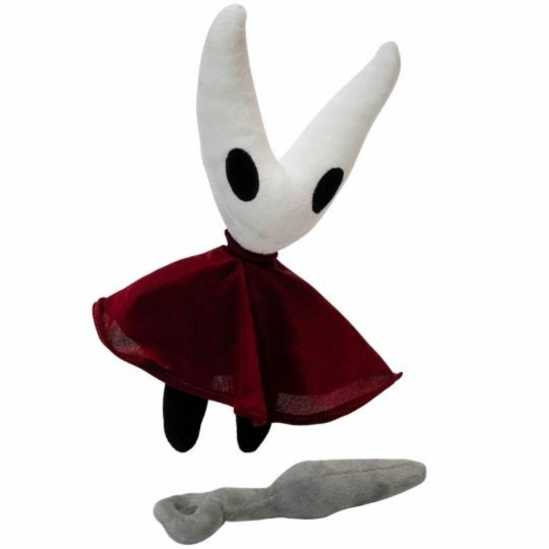 【ホーネット】ホロウナイトをモチーフにしたぬいぐるみ、とてもかわいい騎士。主人公の前に立ちはだかるボスキャラクターの一人。赤いマント、動物の耳みたいに長く尖った仮面、ユニークな武器である針などが印象的。一部の攻撃や動きで見るとおり、マントの下の容姿は細身で主人公みたいな真っ黒いボディ。