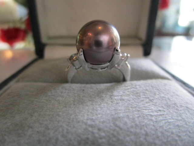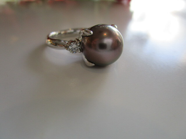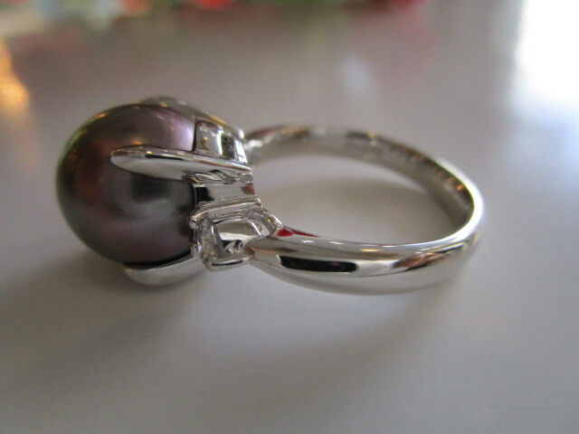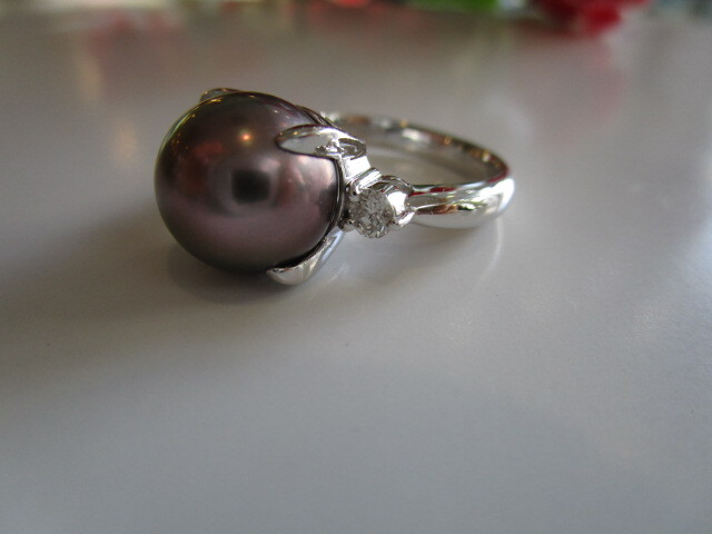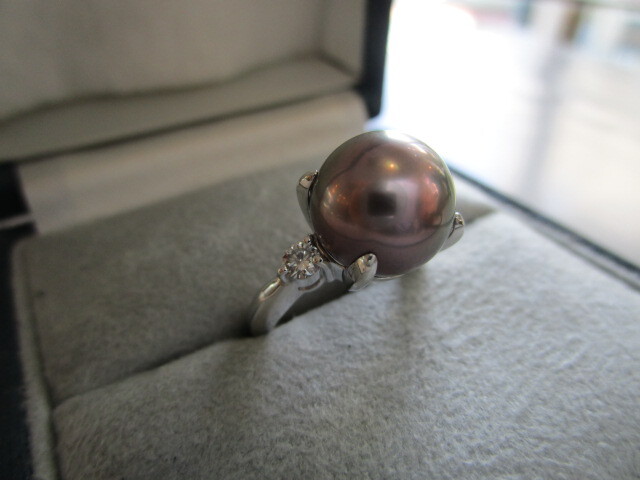 ●Pt黒蝶パールダイヤ入りリング(シチズンジュエリー)