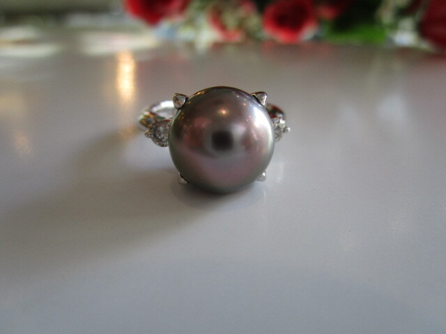 ∈Å∋長期在庫品の為お買い得!☆Pt黒蝶パール11mmダイヤ入りリング☆