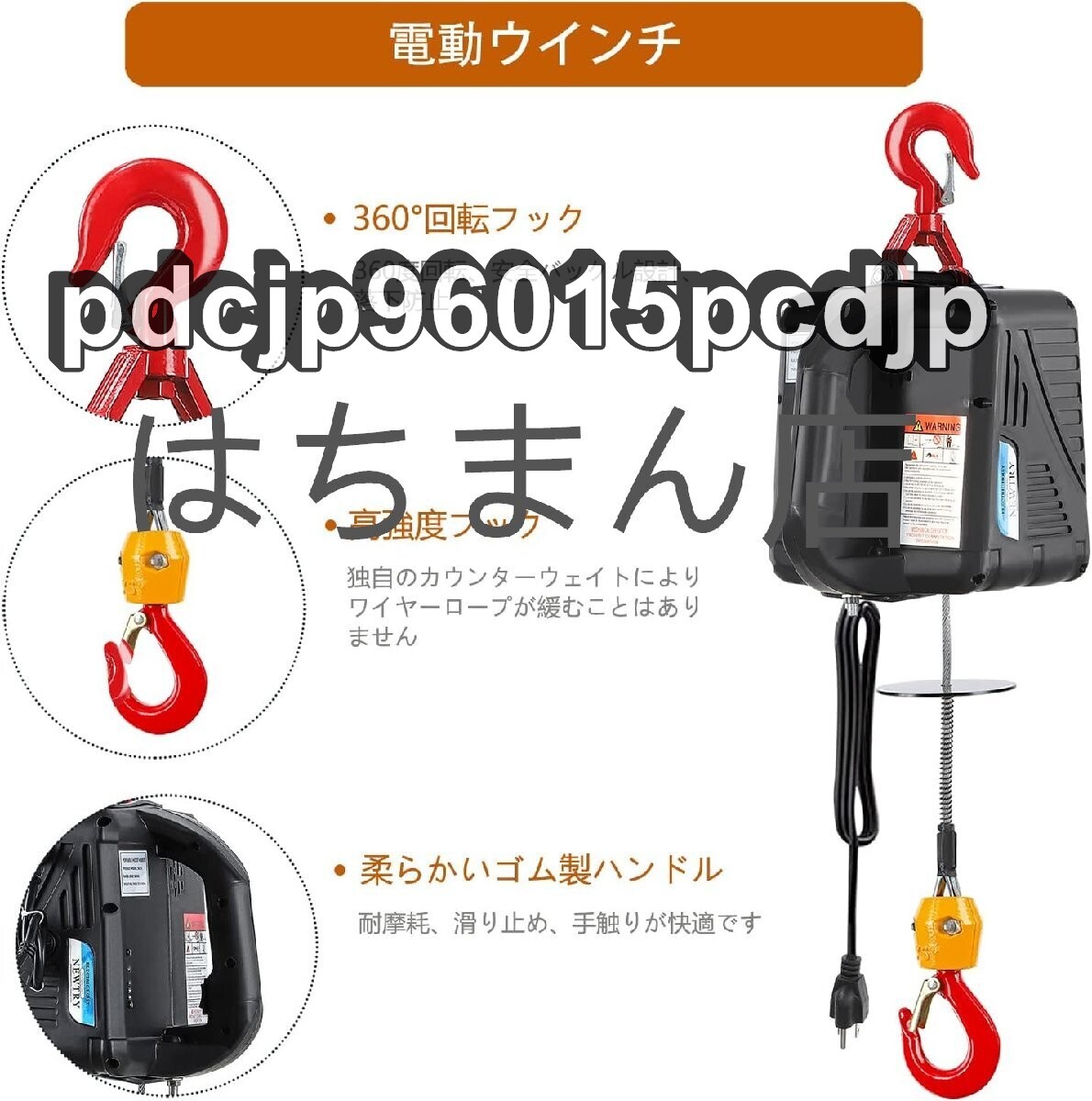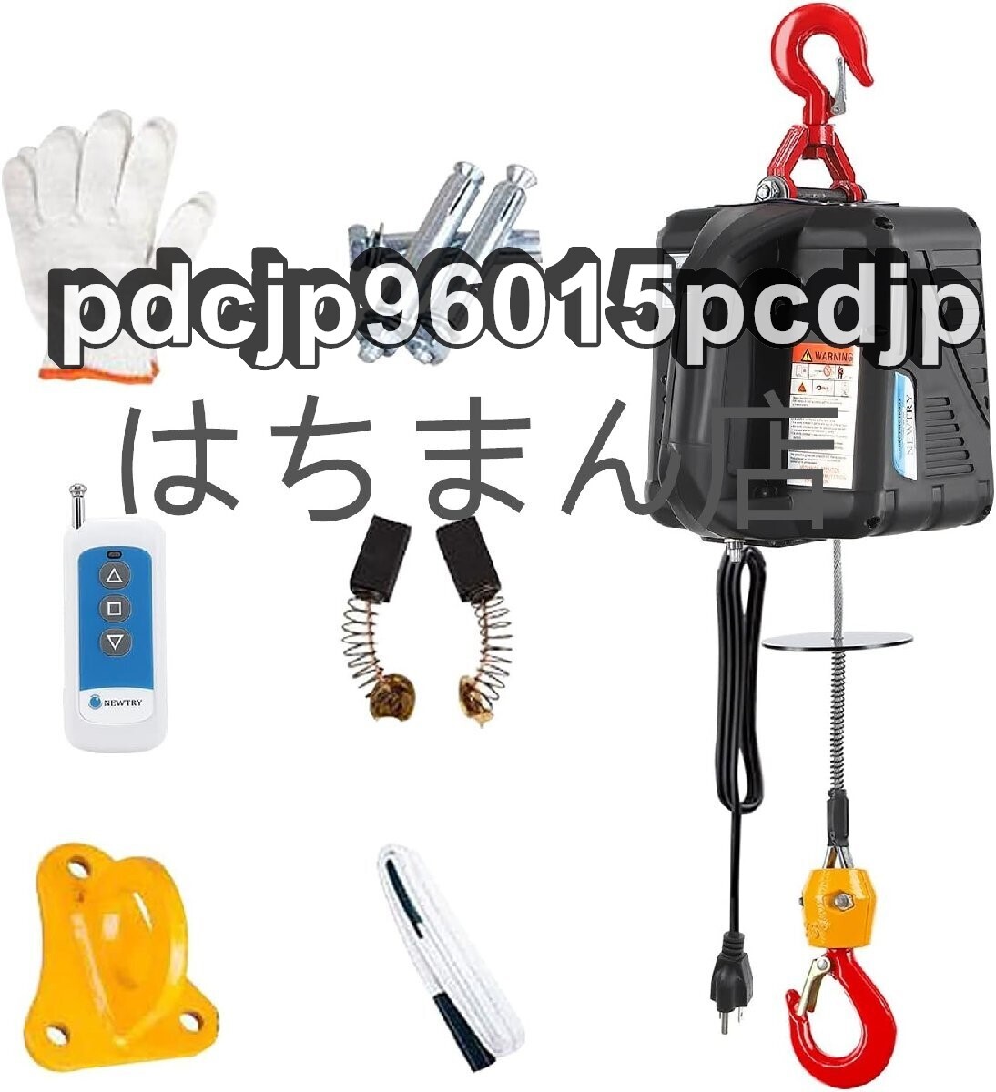 電動ウインチ 電動ホイスト 小型クレーン 巻き上げ機 吊り上げ能力100㎏ ワイヤレスリモコン付き 1500W 業務用 110V 黒色(リフト高さ25m)