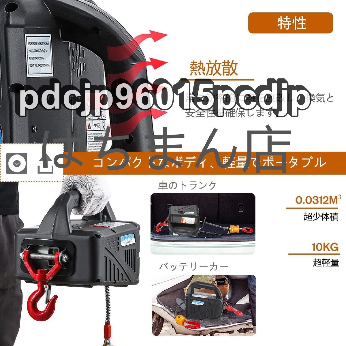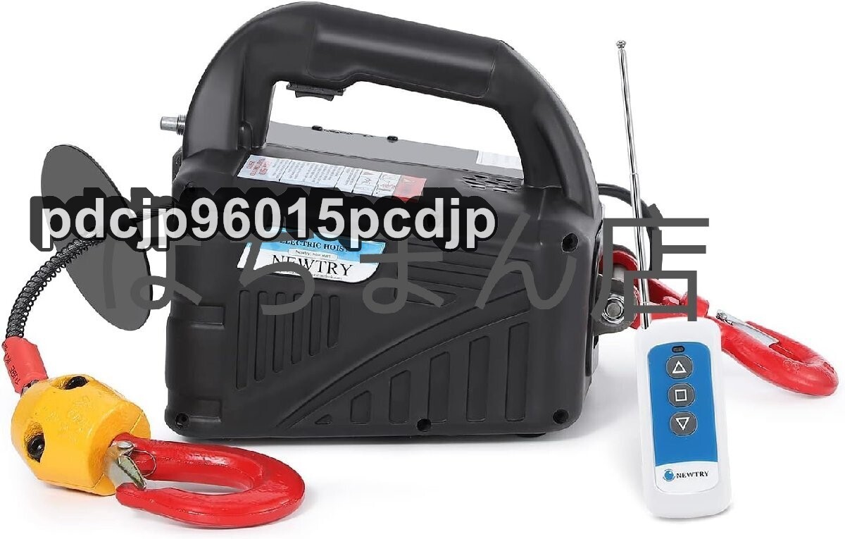状態:新品未使用 【用途】:重いものを吊り上げるのに適する家庭用電動ウインチです。 【特徴】:黒色のポータブル式ウインチ、持ち運びに便利です;コンパクトサイズ、軽量で取付が簡単です。 【デザイン】:放熱率よいアルミ製ギア箱;巻き込み防止機能;強動力全銅モーター;360°回転できる脱落防止フック。 【安全保護】:定格リフト高さになると自動的に電源をきるリミットスイッチ;荷重超過保護機能;アラーム機能のあるLEDパイロットランプ。 【ワイヤレスリモコン】:制御距離は最大60Mに達します。また、一台のリモコンは一台の機械しか制御できません。リモコン用電池は23A 12V電池です(電池別売り) ★商品写真はできる限り実物の色に近づけるよう努めておりますがご使用のPCモニター設定や部屋の照明により多少、色の変化が感じられる場合がございます