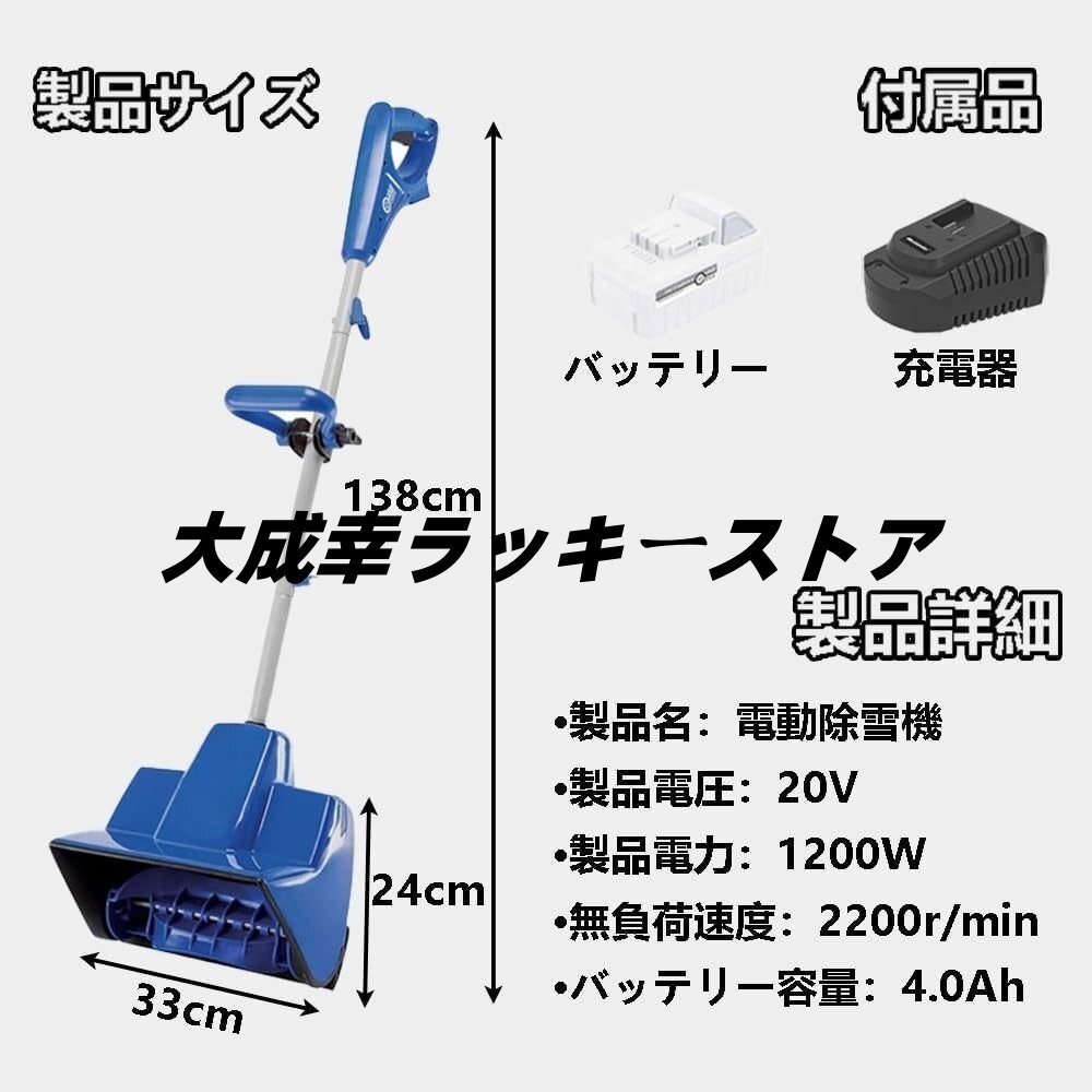 電動除雪機 コードレス 10インチ 24V/4.0Ah コードレス リチウムイオンバッテリー スノーブロワ 家庭用 強力 雪かき機 1200Wモーター 軽量