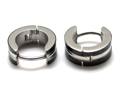 ★人気★お勧め★手入れ不要★肌に優しい★金属アレルギー&温泉&海水浴ご使用OK★ステンレスリングピアス★ダブルブラックライン★