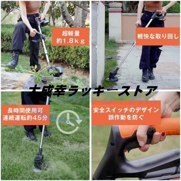 草刈機 充電式 電動 電動草刈り機 刈払機 コードレス 伸縮 角度調整 雑草 替刃付き 36Vバッテリ2個付き 無線 軽量 日本語取扱説明書