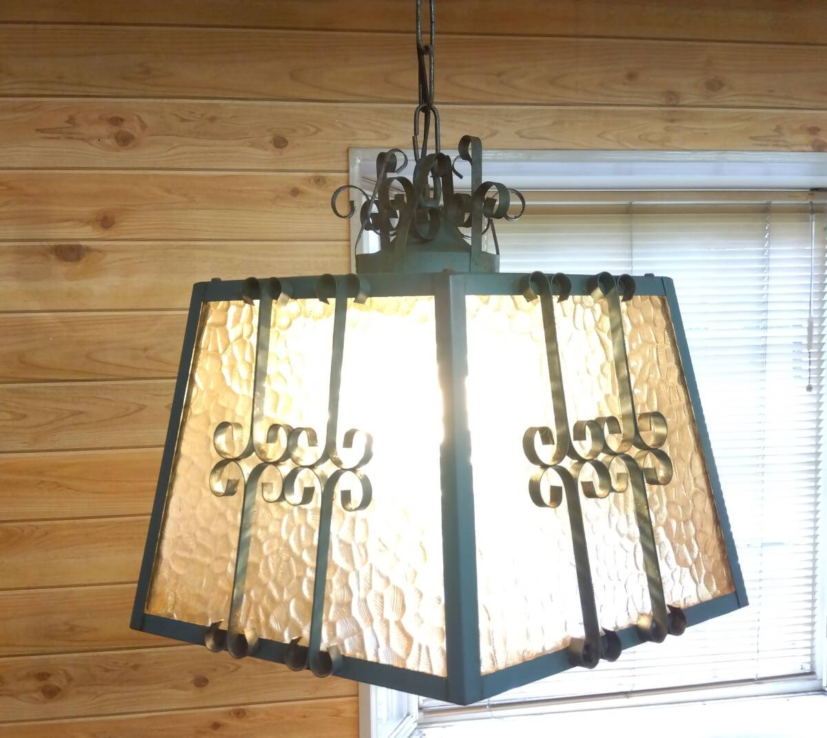 アンティーク照明 天井照明 昭和レトロ ペンダントライト 吊り下げ照明 石目模様ガラス 4点セット 引き取り歓迎