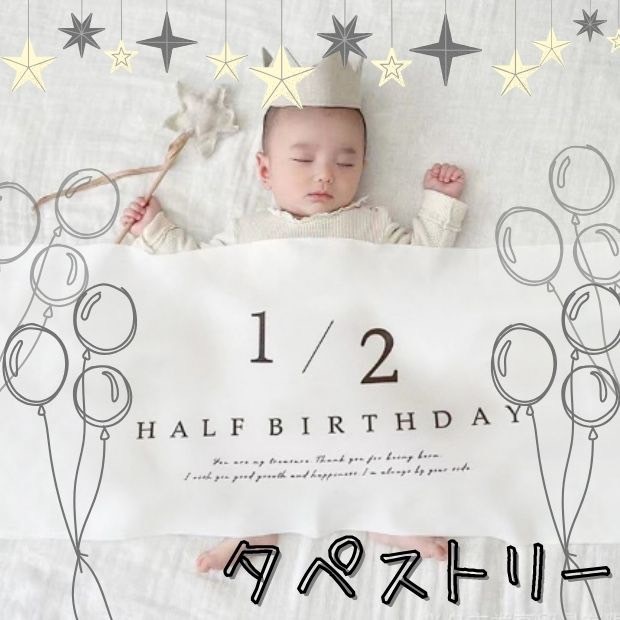 ハーフバースデーを祝う特別な日にぴったりのタペストリー飾りです。
