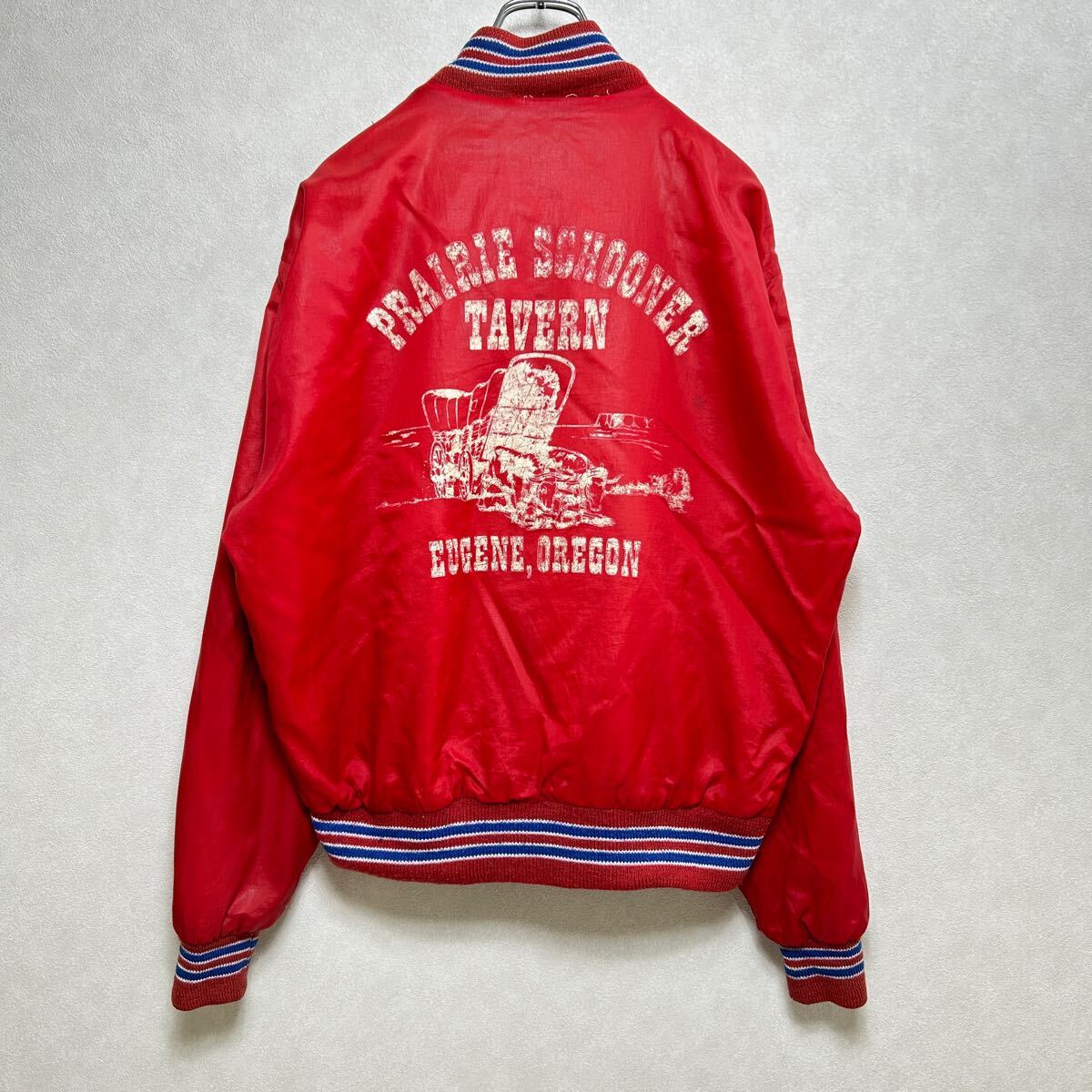 YT2317 80s 90s WEST WIND ナイロンスタジャン Lサイズ スナップボタン ビンテージ バックプリント 古着 ブルゾン ヴィンテージ
