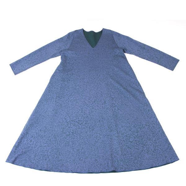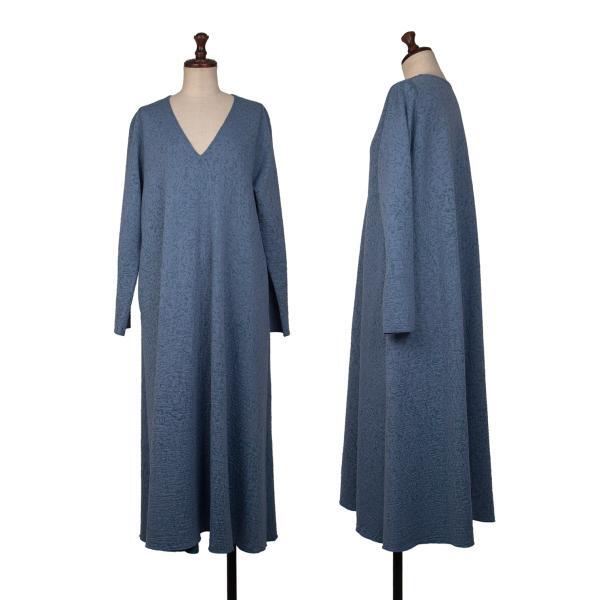 | ヨーガンレールJURGEN LEHL ヨーガンレールJURGEN LEHL ウールコットンジャガードVネックワンピース 青緑M |